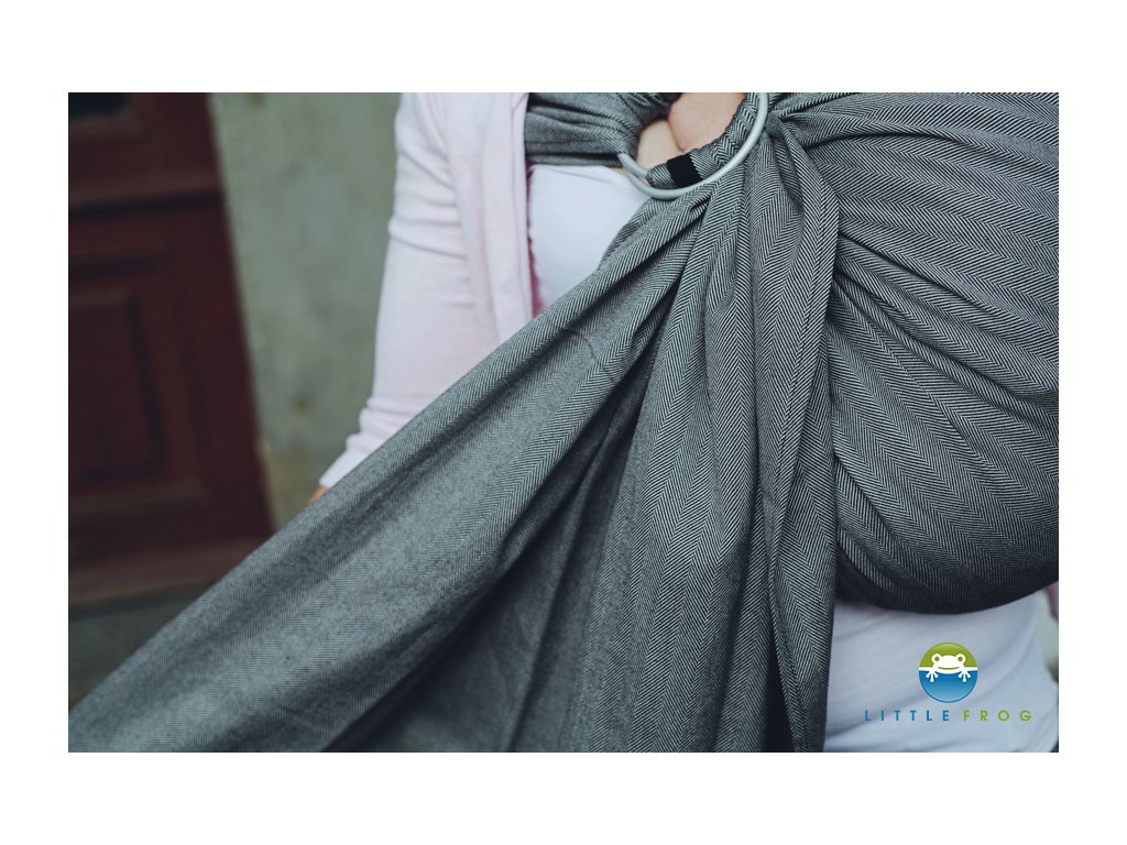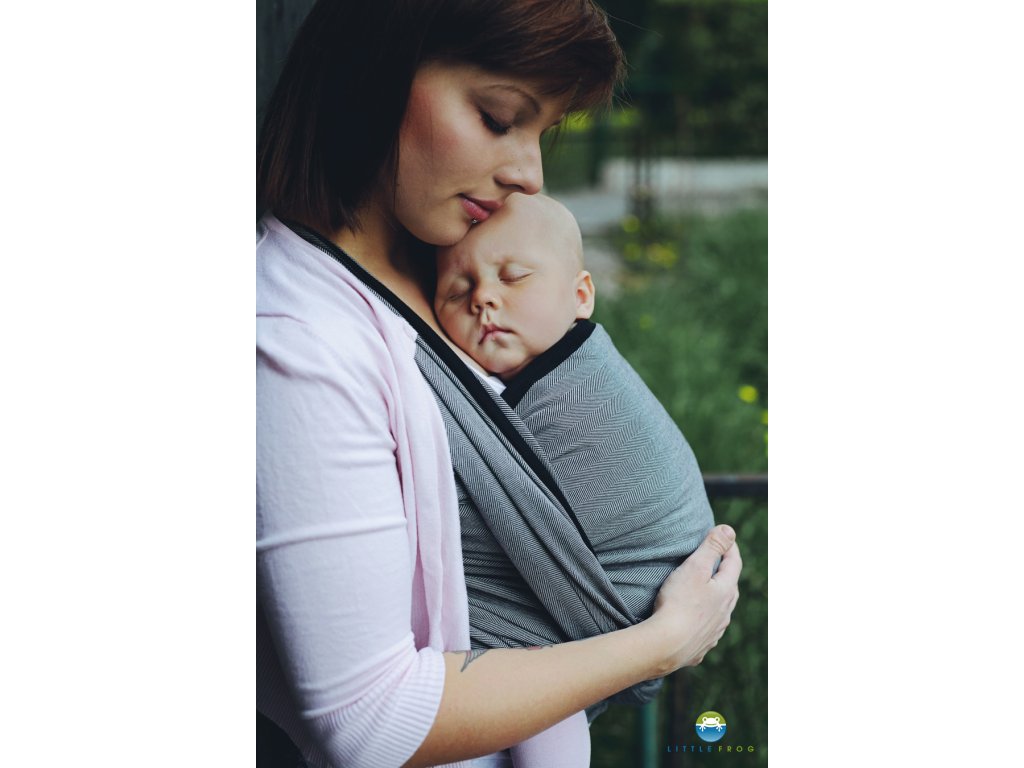 Little Frog je středně šátek, tkaný vazbou rybí kost, příjemně nosný, poddajný a měkký. Gramáž šátku zaručuje příjemný uzel v úvazu a nosnost ve vícevrstvé úvazu i pro těžší děti.