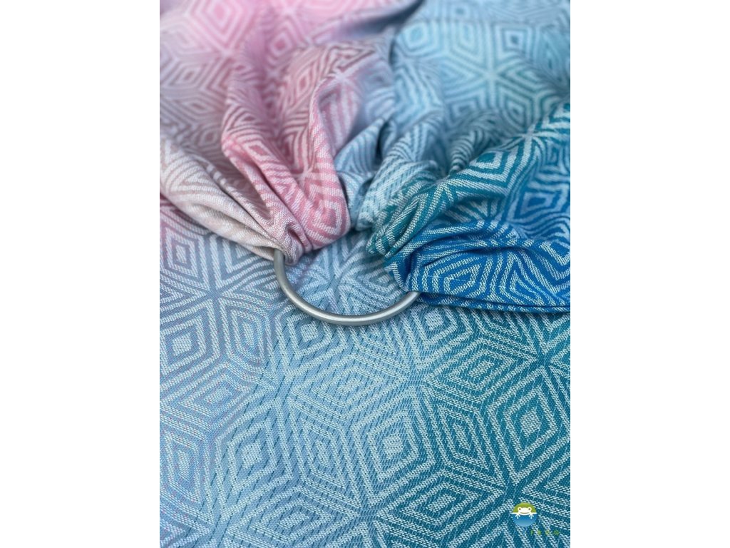 Little Frog Ring Sling Elafonisi Cube je velmi tenký šátek s příměsí tencelu, který je určen pro nošení těch nejmenších, tento šátek vás bude provázet prvním rokem života vašeho miminka, bude skvělým parťákem pro všechna roční období včetně horkého léta.