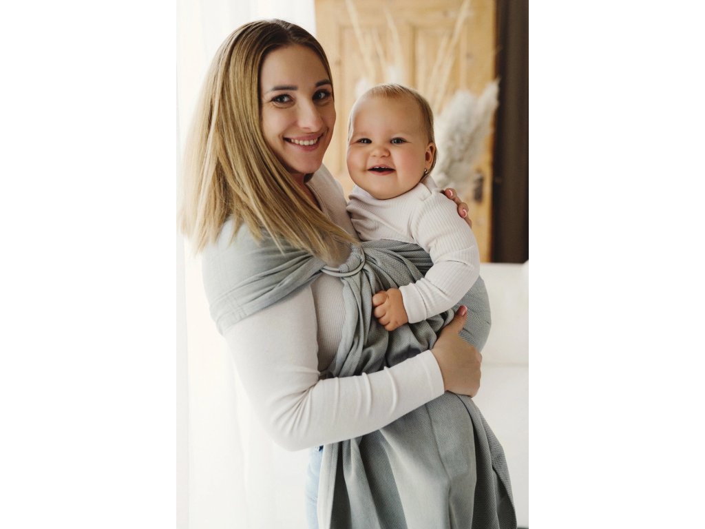Little Frog Ring Sling Gray Moonstone je celobavlněný šátek tkaný keprovou vazbou, šátek to je velmi tenký, měkký a hebký, z toho důvodu je vhodný pro novorozená miminka. Šátek vás bude provázet zhruba prvním rokem života vašeho miminka. Díky své tloušťce je vodný po celý rok včetně horkých letních dní.