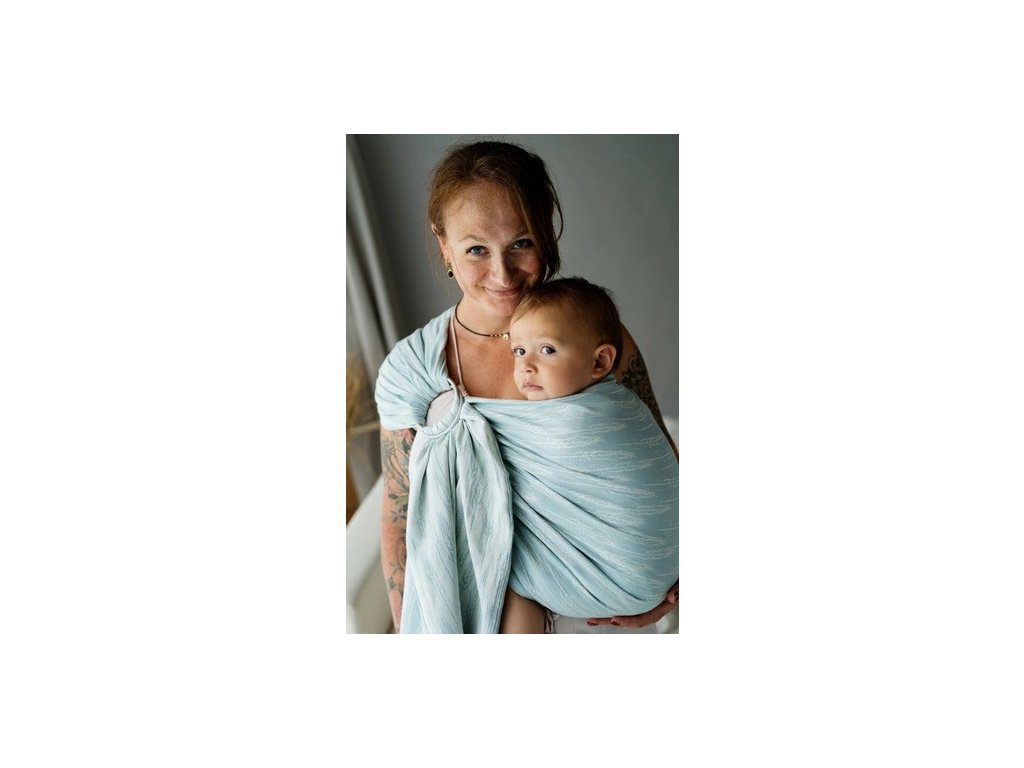 Little Frog Ring Sling Steel Whisper je tenčí, celobavlněný šátek, tkaný žakárovou vazbou, nosný, poddajný a měkký, je určen pro nošení těch nejmenších, tento šátek vás bude provázet prvním rokem života vašeho miminka.