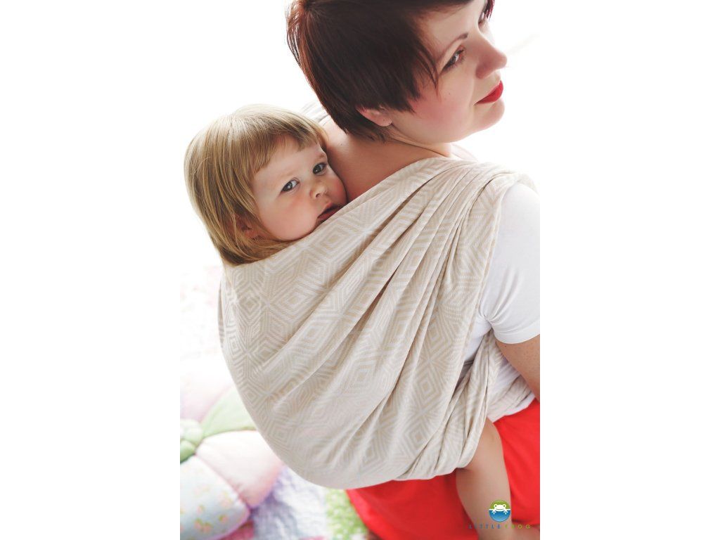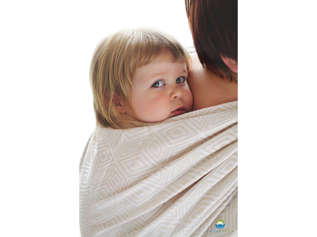 Little Frog je středně silný šátek, tkaný žakárovou vazbou, příjemně nosný, poddajný a měkký. Gramáž šátku zaručuje příjemný uzel v úvazu a nosnost i pro těžší děti.
