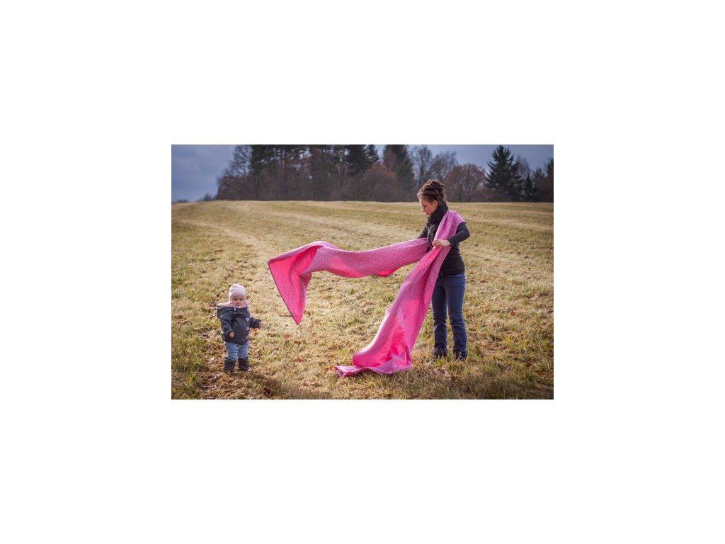 Skvělý šátek s příměsí jemné merino vlny. V testování hodnocen jako velmi nosný - a tedy skvělý pro větší děti - nicméně hezky se s ním vážou i malá miminka (ověřeno na vlastních dětech!).