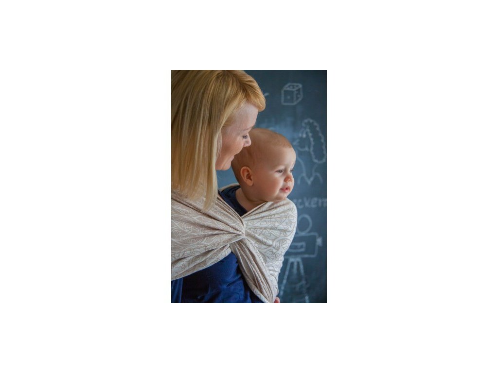 Šátek je vyroben ze 100% česané bavlny, která zaručuje hebkost a měkkost. Díky způsobu tkaní a žakárové vazbě nabízí miminku rovnoměrnou oporu a krásně se přizpůsobí tělíčku dítěte i Vám. Samozřejmostí je označení středu a šikmé cípy, které usnadňují zavazování uzle. Díky zašití okrajů je šátek oboustranný - nemá tedy rub a líc, ale můžete ho nosit ven tou stranou, která se vám zrovna líbí víc.