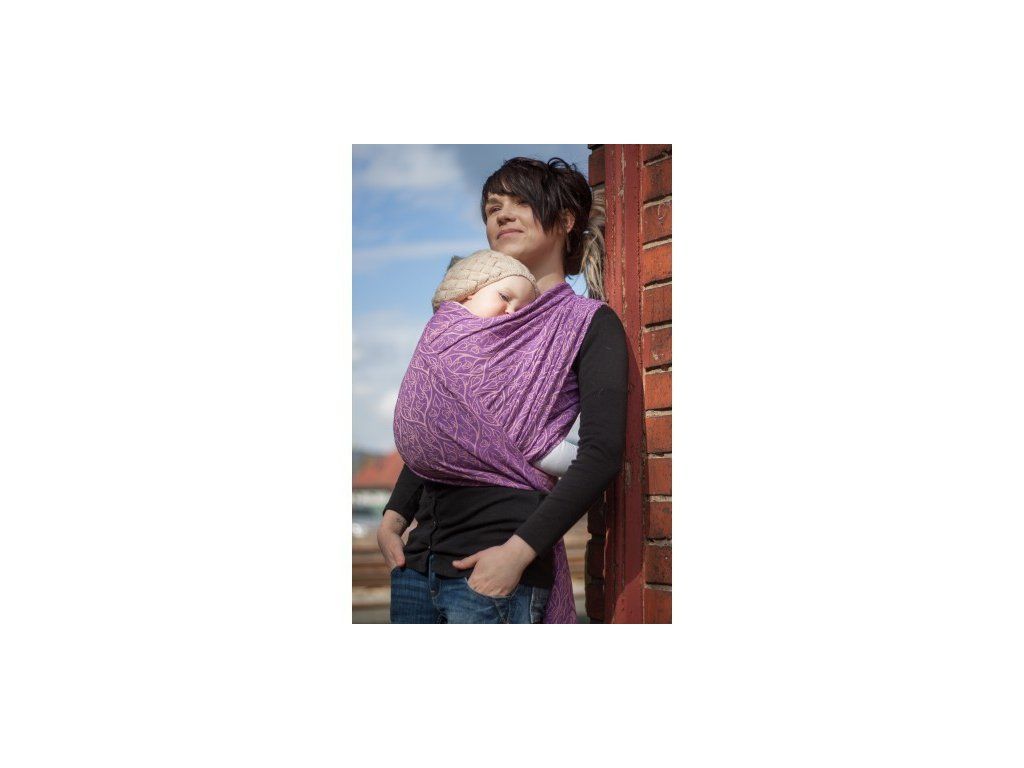 Šátek je vyroben ze 100% česané bavlny, která zaručuje hebkost a měkkost. Díky způsobu tkaní a žakárové vazbě nabízí miminku rovnoměrnou oporu a krásně se přizpůsobí tělíčku dítěte i Vám. Samozřejmostí je označení středu a šikmé cípy, které usnadňují zavazování uzle. Díky zašití okrajů je šátek oboustranný - nemá tedy rub a líc, ale můžete ho nosit ven tou stranou, která se vám zrovna líbí víc.