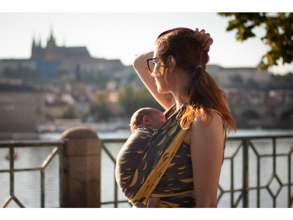 Šátek posíláme zabalený v látkové tašce se stylizovaným logem Loktu She. Přiložená je brožura, ve které najdete informace o nošení dětí a návod k uvázání základního úvazu, kterým je Kříž s kapsou uvnitř.