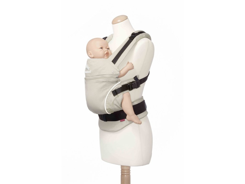 - Měkká, ale pevná látka obepíná tělo neseného dítěte a imituje tak klasické nosící šátky.