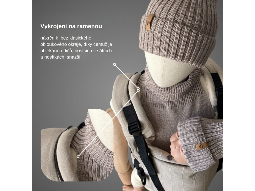 Merino nákrčník pro dospělé je perfektní řešení pro nosící rodiče– delší přední a kratší zadní část umožňuje pohodlné nošení dětí s šátkem nebo nosítkem a zároveň si můžete užívat pohodlí, lehkost a styl!