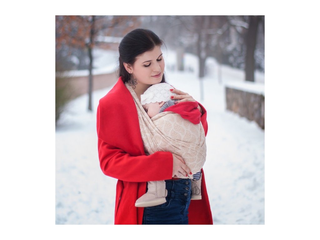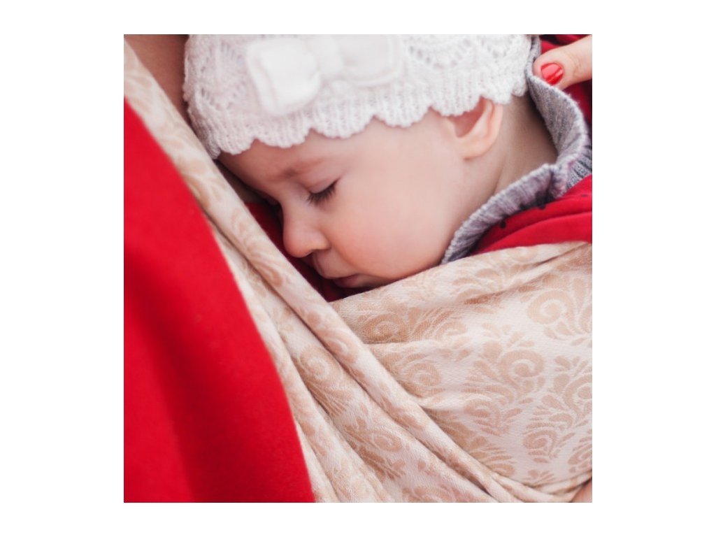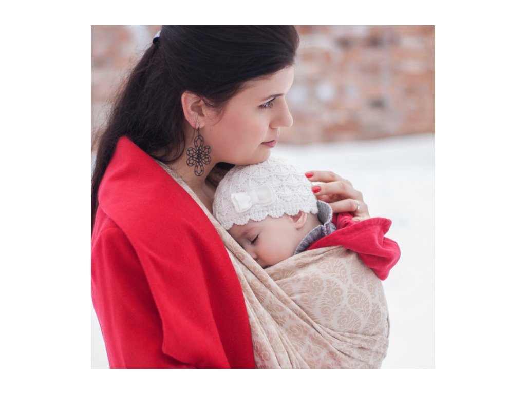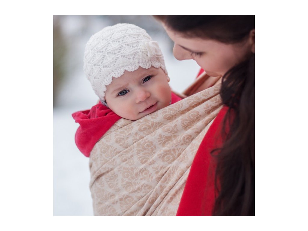 Moisha Filigrán Sand – univerzální, nadýchaný šátek, vhodný pro malá miminka i větší batole.