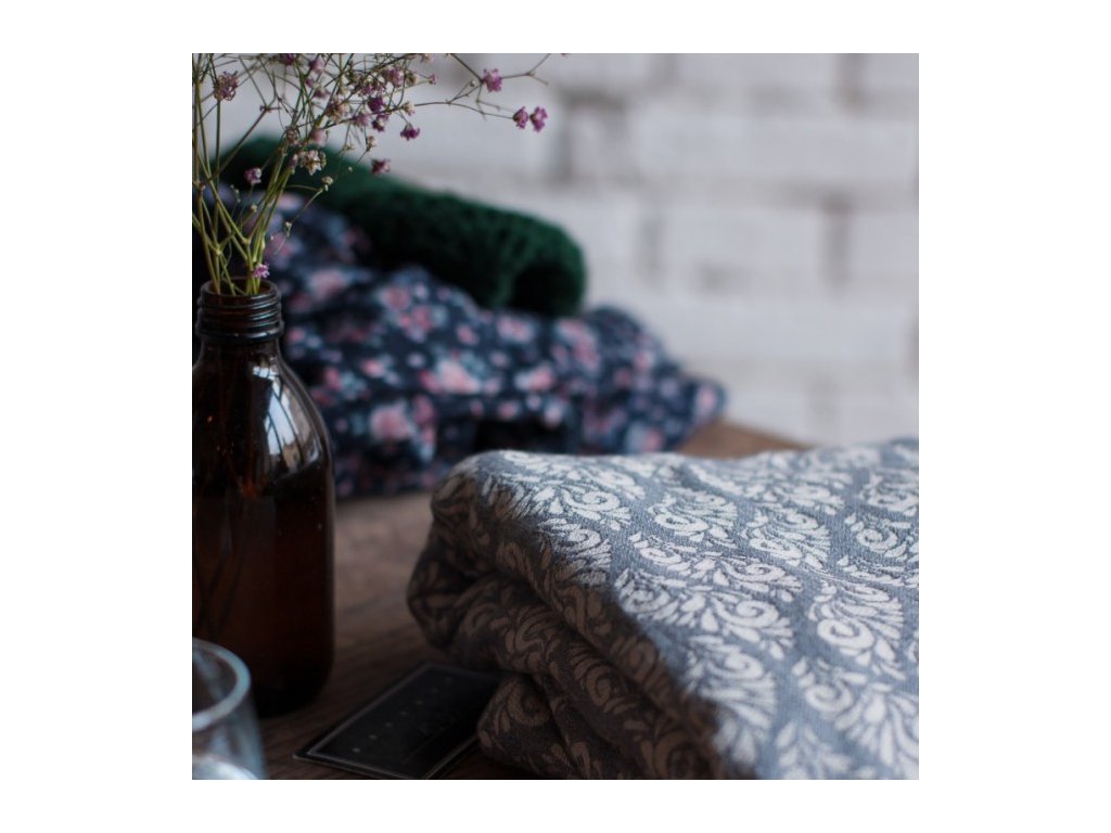 Moisha Filigrán Steel – univerzální, nadýchaný šátek, vhodný pro malá miminka i větší batole.