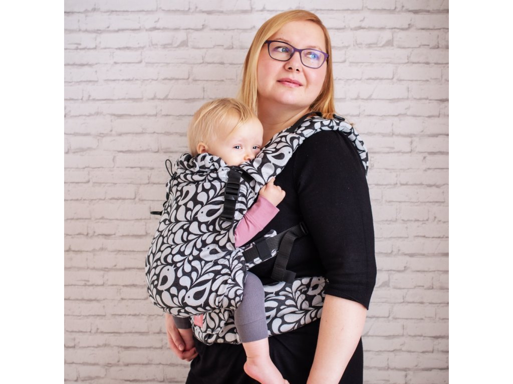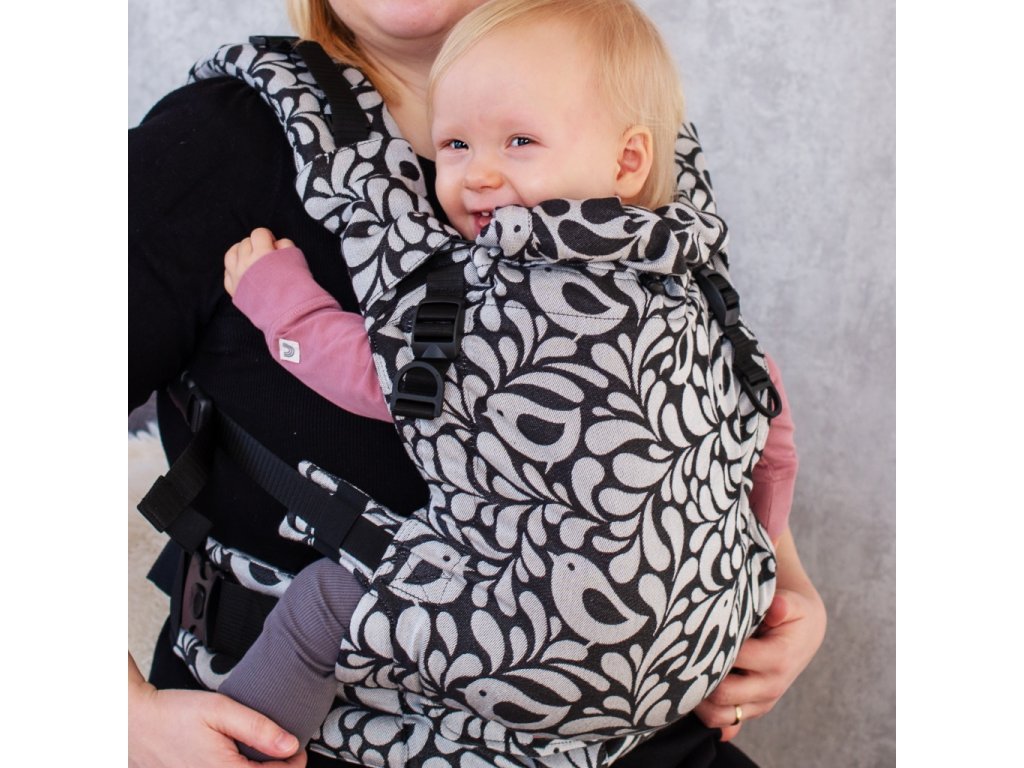 Ergonomicky tvarované ramenní popruhy mají velmi pohodlné polstrování a zaručují maximální komfort i při nošení těžších děti. Dvoucestná přezka umožňuje i tolik oblíbené křížení popruhů. Polstrovaná část je dostatečně dlouhá, aby i při překřížení na zádech netlačily tkané popruhy.