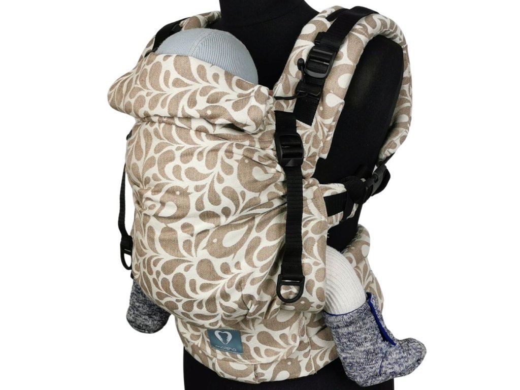 Tvar zádové opěrky a praktické hlubší záševky u sedu, zajišťují u nosítka Moisha Grow výborné podsazení nožiček dítěte a správnou fyziologickou polohu páteře. Nosítko je tak vhodné už pro děti od cca 2 měsíců cca 58 cm do výšky dítěte cca 98 cm. .