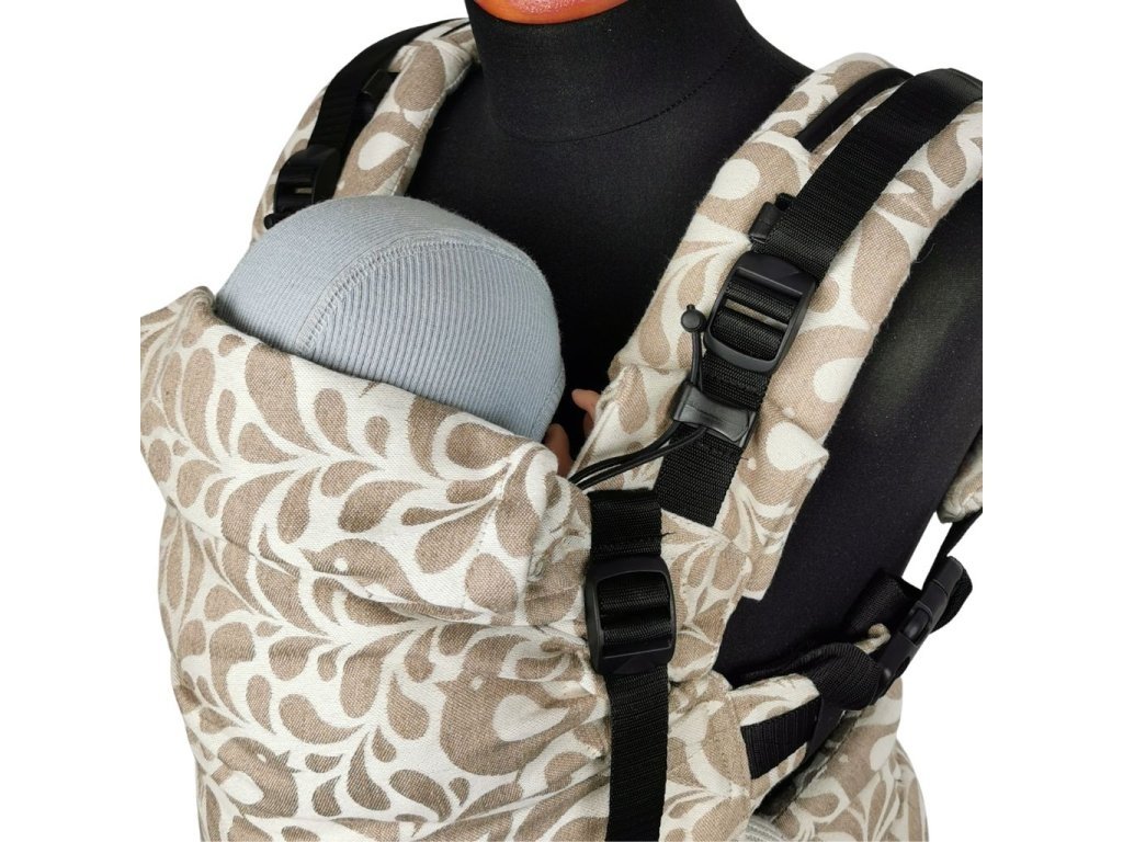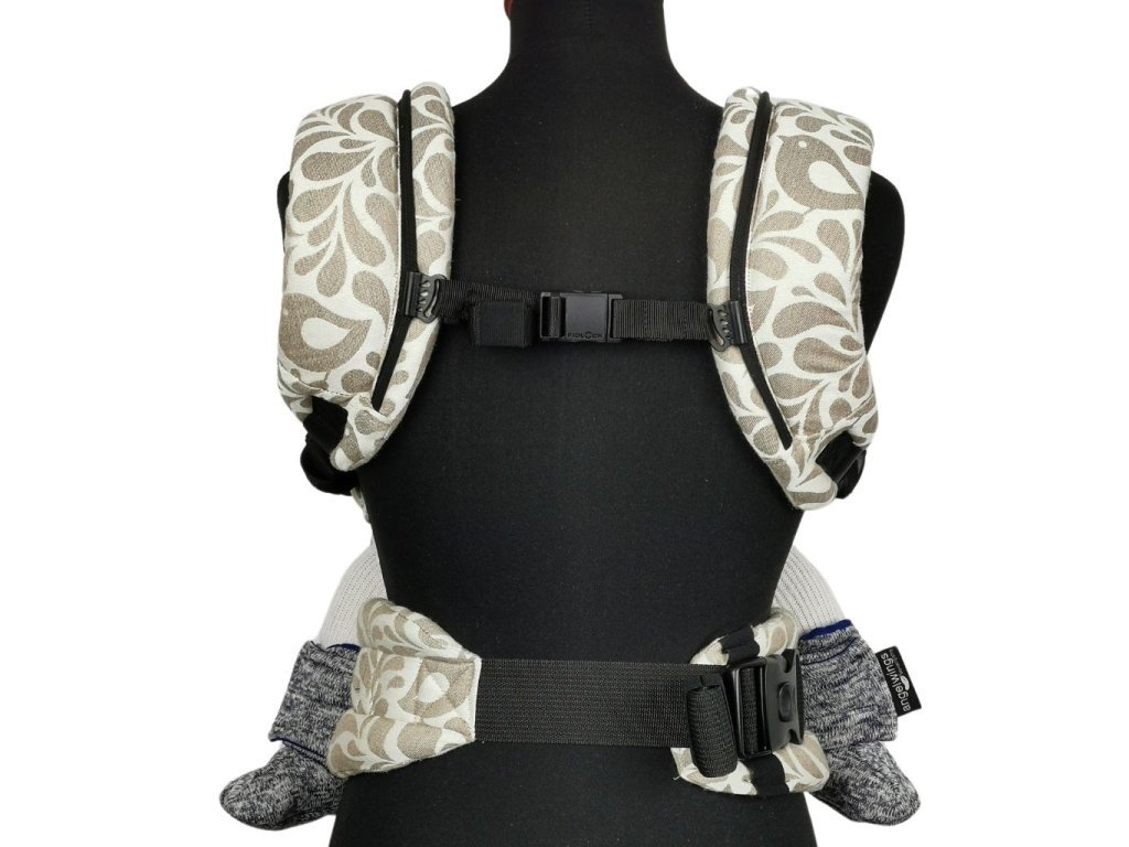 Ergonomicky tvarované ramenní popruhy mají velmi pohodlné polstrování a zaručují maximální komfort i při nošení těžších děti. Dvoucestná přezka umožňuje i tolik oblíbené křížení popruhů. Polstrovaná část je dostatečně dlouhá, aby i při překřížení na zádech netlačily tkané popruhy.