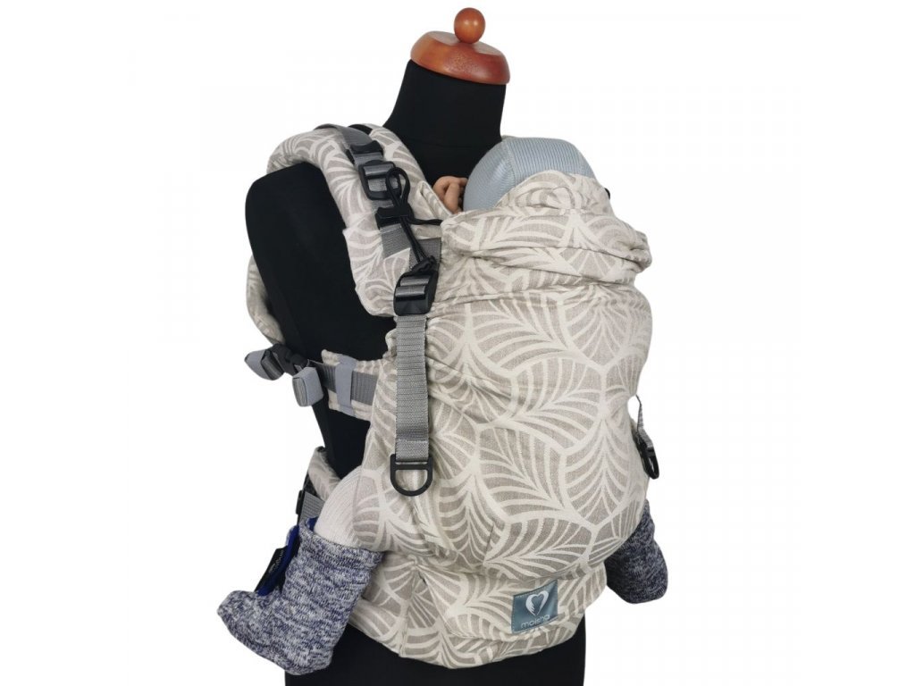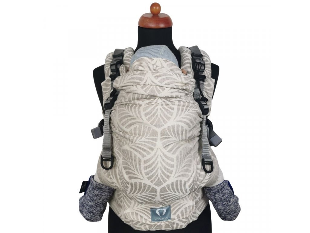 Tvar zádové opěrky a praktické hlubší záševky u sedu, zajišťují u nosítka Moisha Grow výborné podsazení nožiček dítěte a správnou fyziologickou polohu páteře. Nosítko je tak vhodné už pro děti od cca 2 měsíců cca 58 cm do výšky dítěte cca 98 cm. .