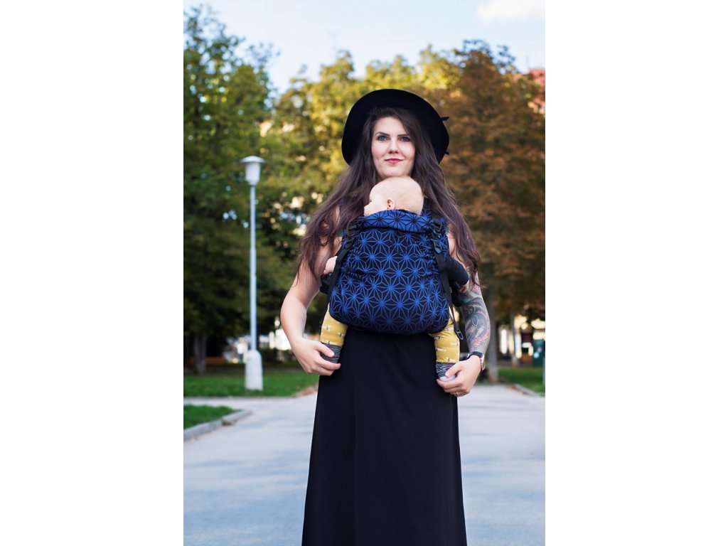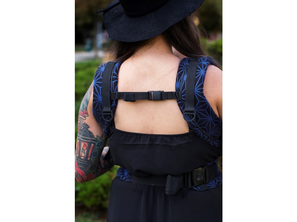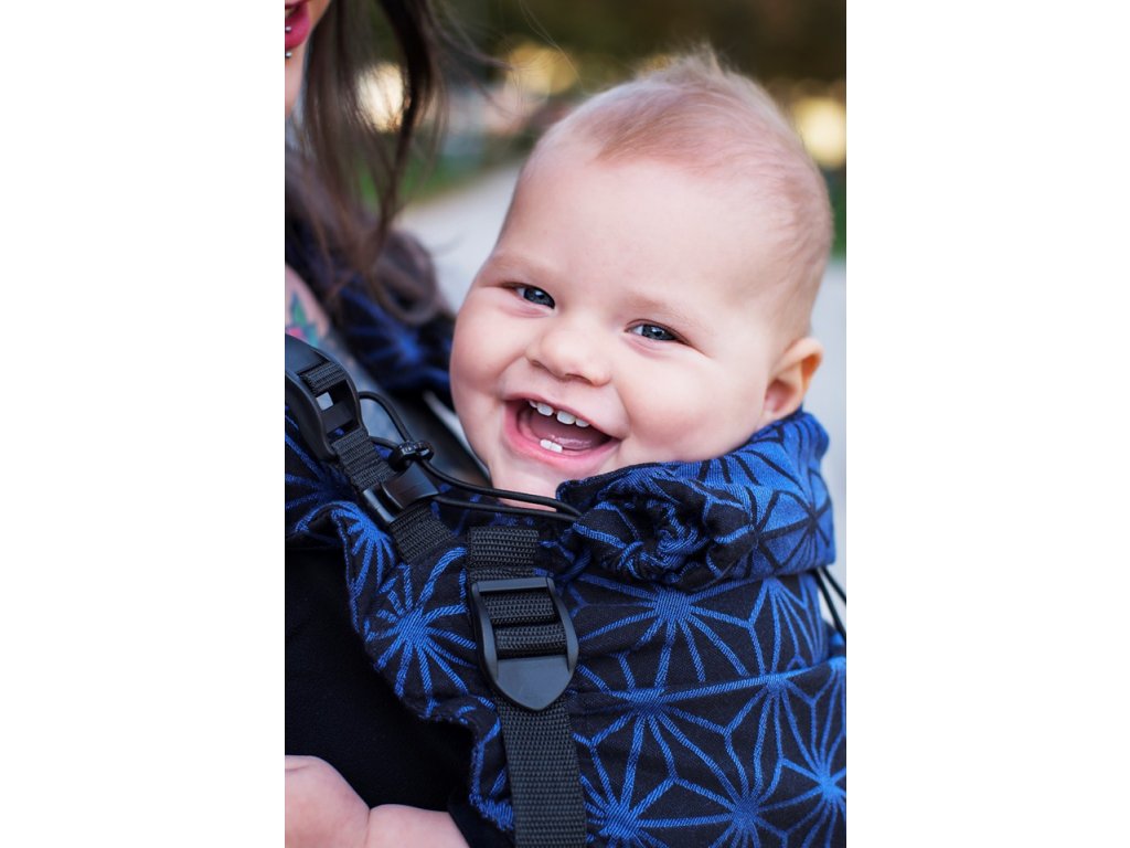 Ergonomicky tvarované ramenní popruhy mají velmi pohodlné polstrování a zaručují maximální komfort i při nošení těžších děti. Dvoucestná přezka umožňuje i tolik oblíbené křížení popruhů. Polstrovaná část je dostatečně dlouhá, aby i při překřížení na zádech netlačily tkané popruhy.