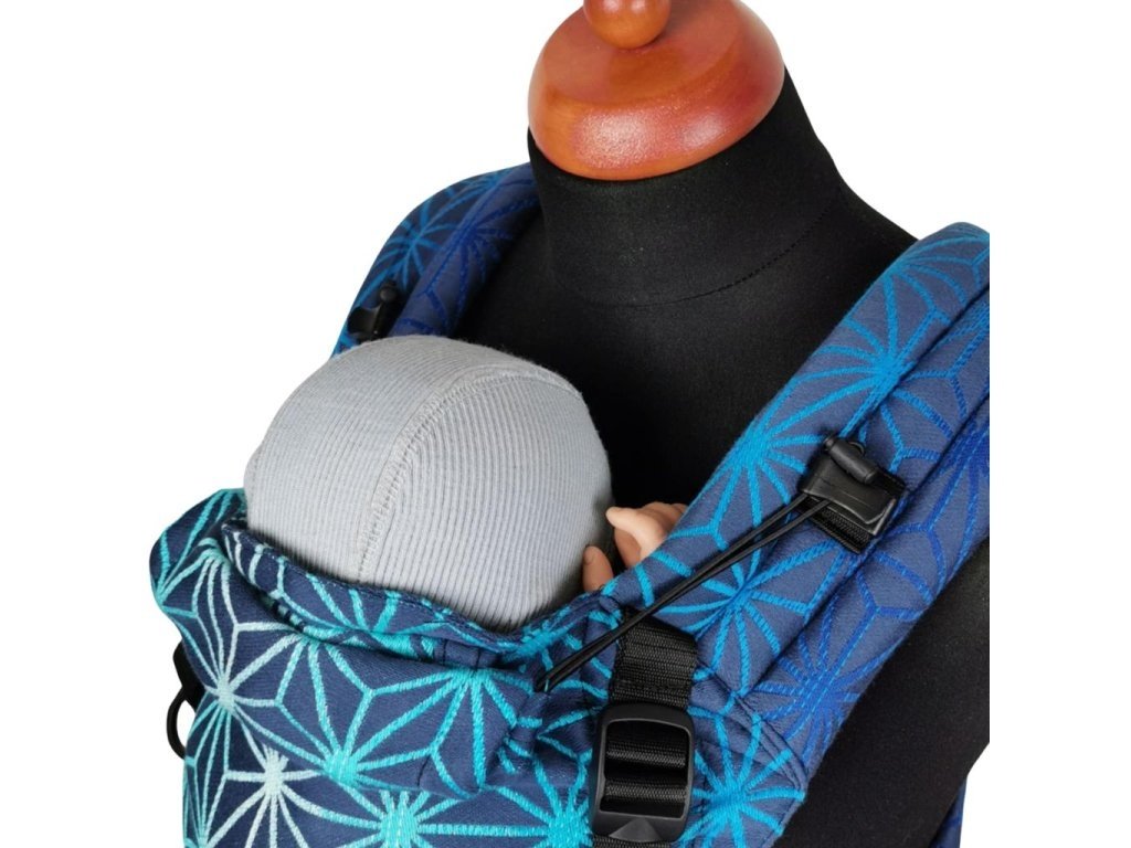 Nosítko má stahovací kapucku, které bezpečně fixuje hlavičku miminka, když právě usne.