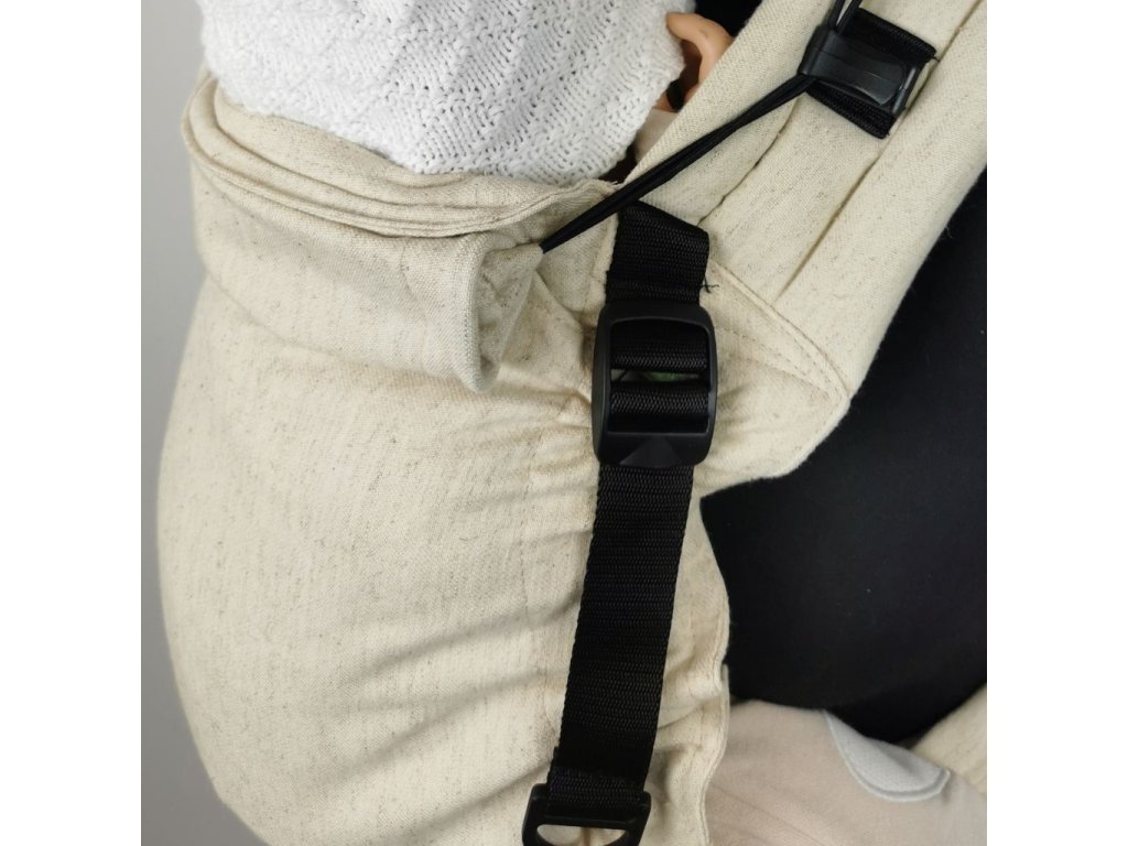 Nosítko má stahovací kapucku, které bezpečně fixuje hlavičku miminka, když právě usne.
