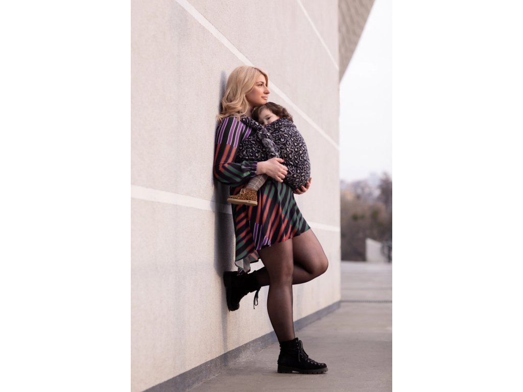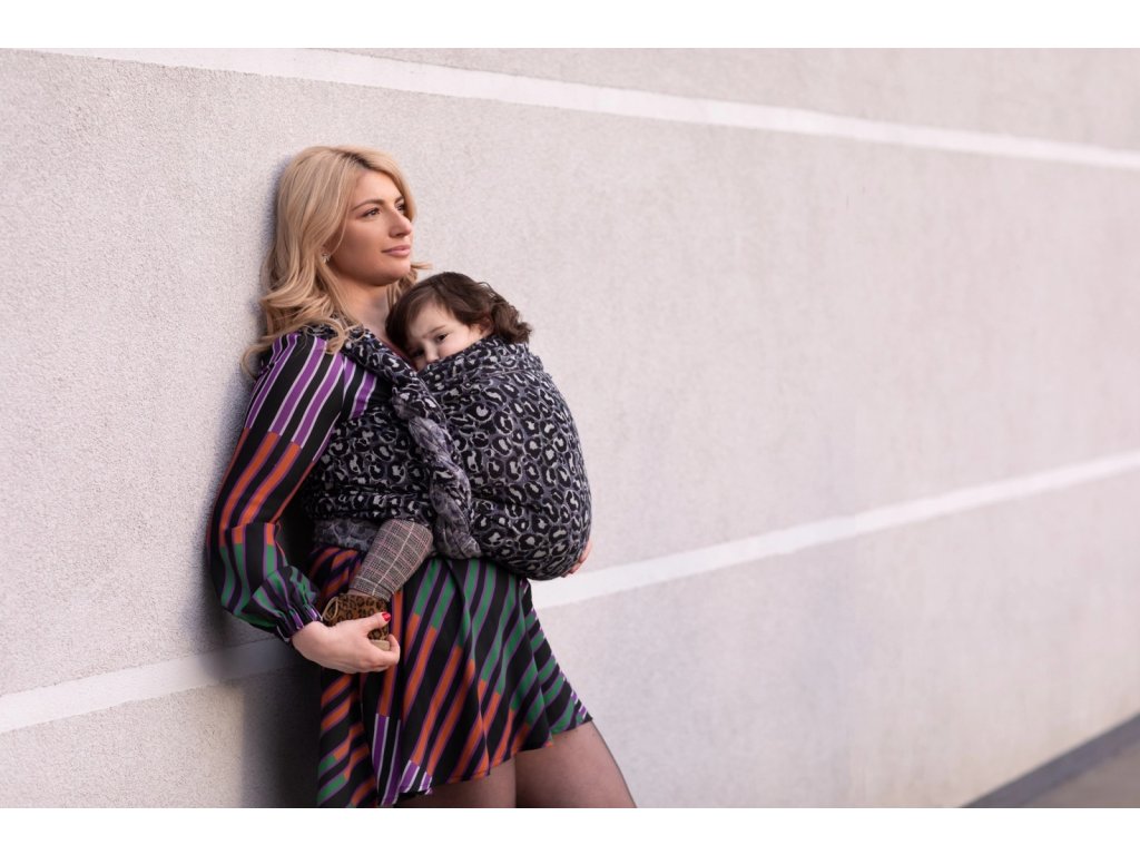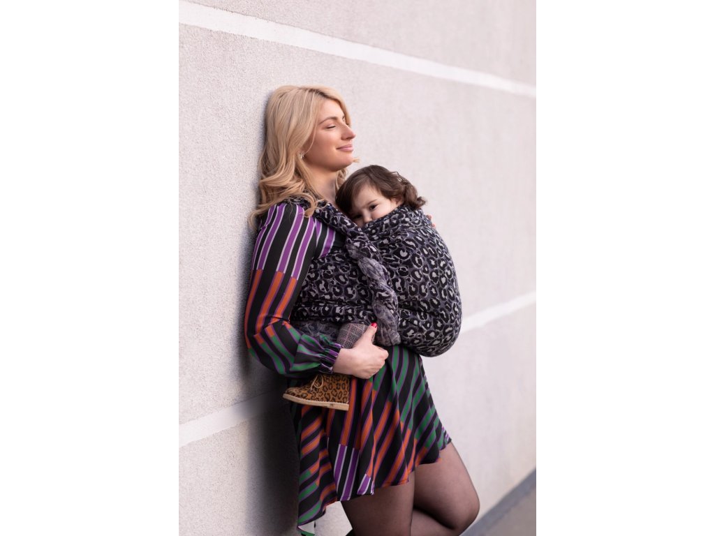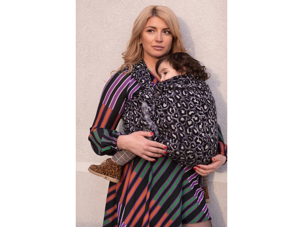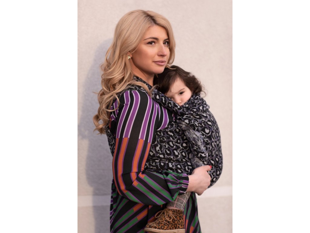 On the Mauve Leopard je dokonalý šátek pro děti cca od 4 měsíců a neopustí vás až do nosícího důchodu, snadno zvládne i vašeho tříletého nošence. Směs hedvábí tussah, přírodního bambus a egyptské bavlny spolu s leopardím vzorem dokážou, že si nošení dětí zamilujete. Je ideální i na těžké nošence. Díky tussahu má nádherné modrožluté nopky.