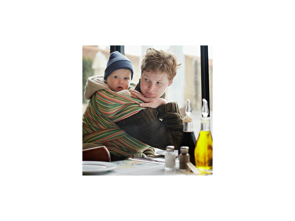 Hladká vazba v jemné a decentní barevné kombinaci se příjemně dotahuje, látka neprokluzuje, je vzdušná, účinně odvádí pot a šátek je velmi dobře nosný.