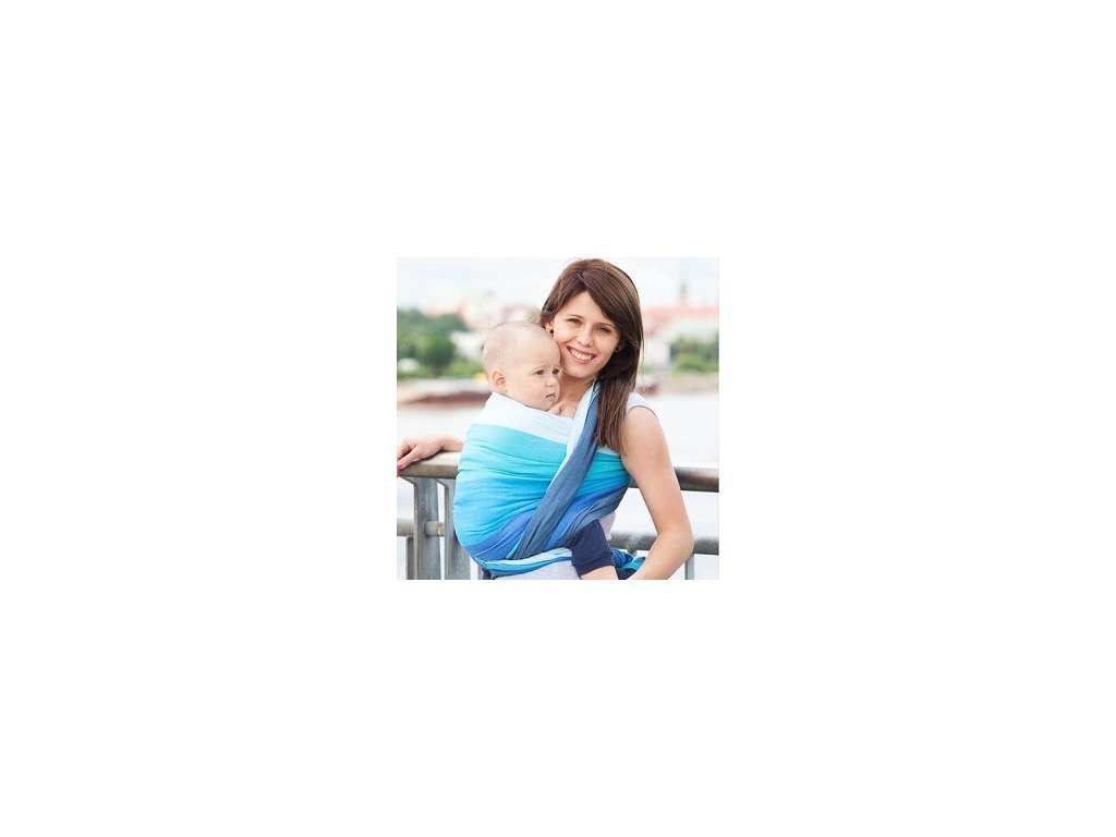 Velmi hladká vazba v jemných barevných kombinacích se příjemně dotahuje, látka neprokluzuje, zároveň je tak akorát "klouzavý" na dotažení v uzlu a šátek je velmi dobře nosný (zkoušeli jsem pro Vás i na 5 letém dítěti).
