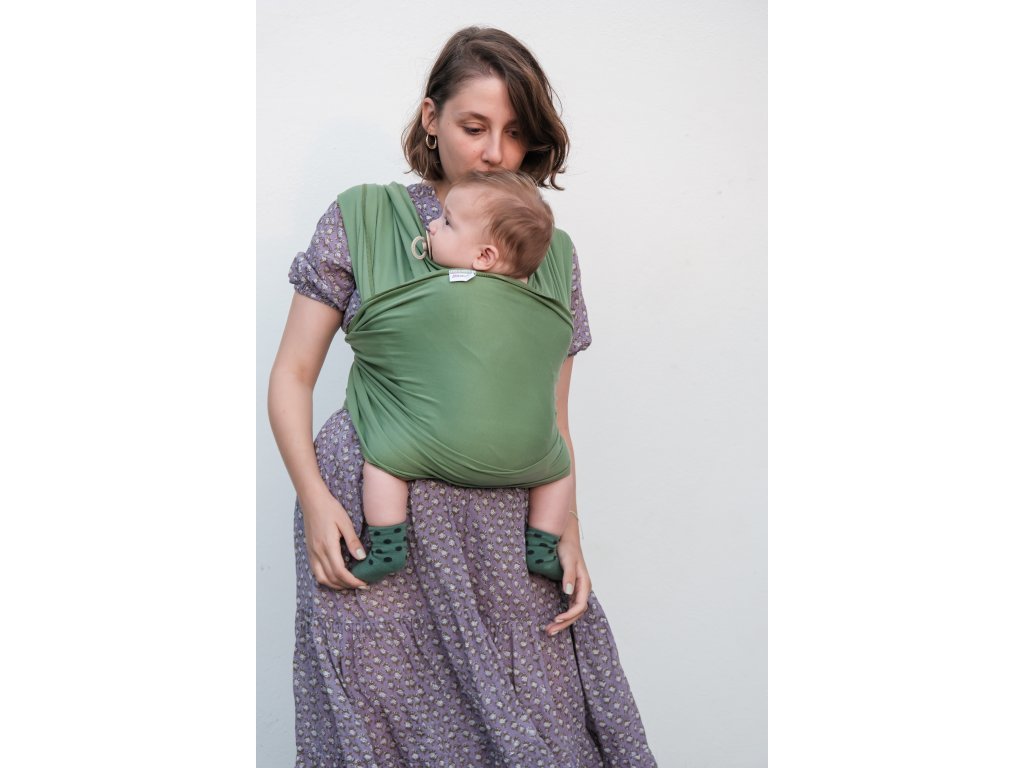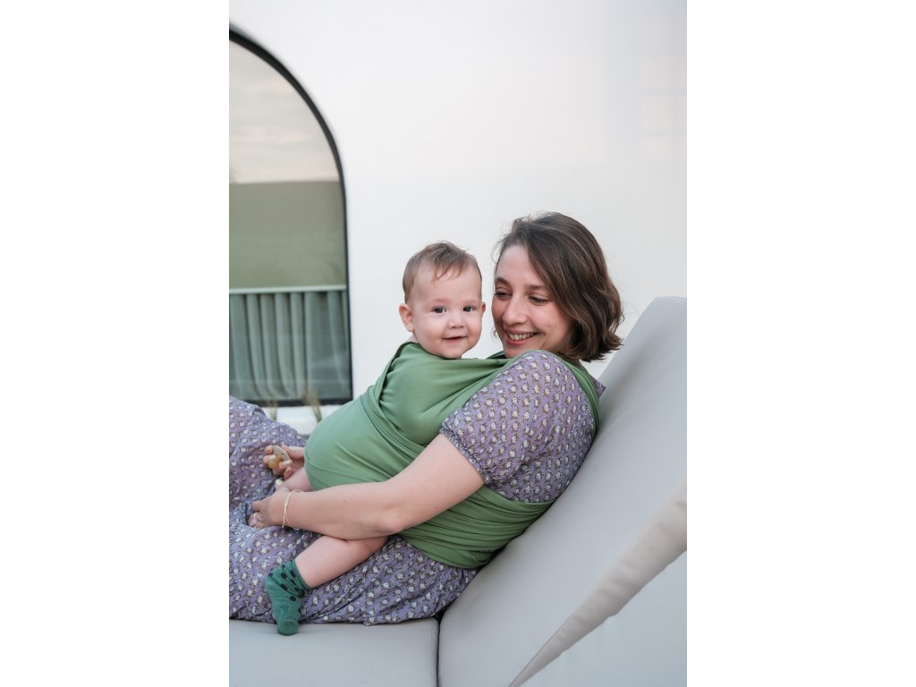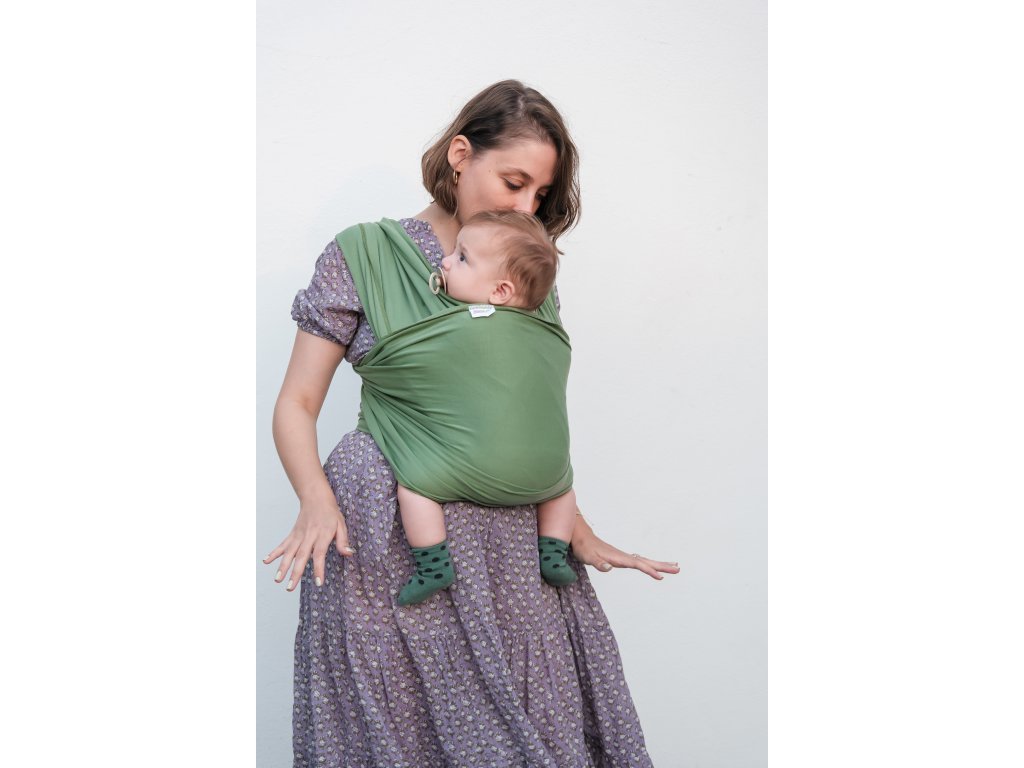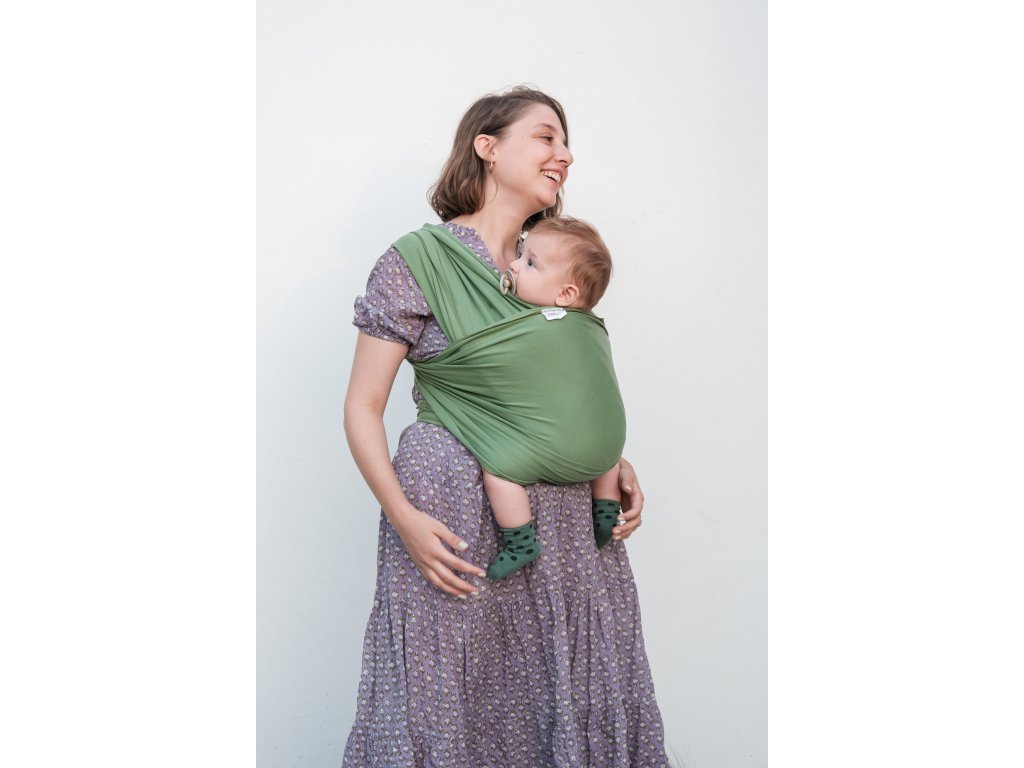 Elastický šátek je velmi tenký, krásně měkký a pružný. Vyžaduje vázání ve 3 vrstvách. Ideálním úvazem pro tento druh šátku je tak KŘÍŽ S KAPSOU VEN.