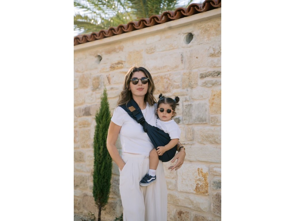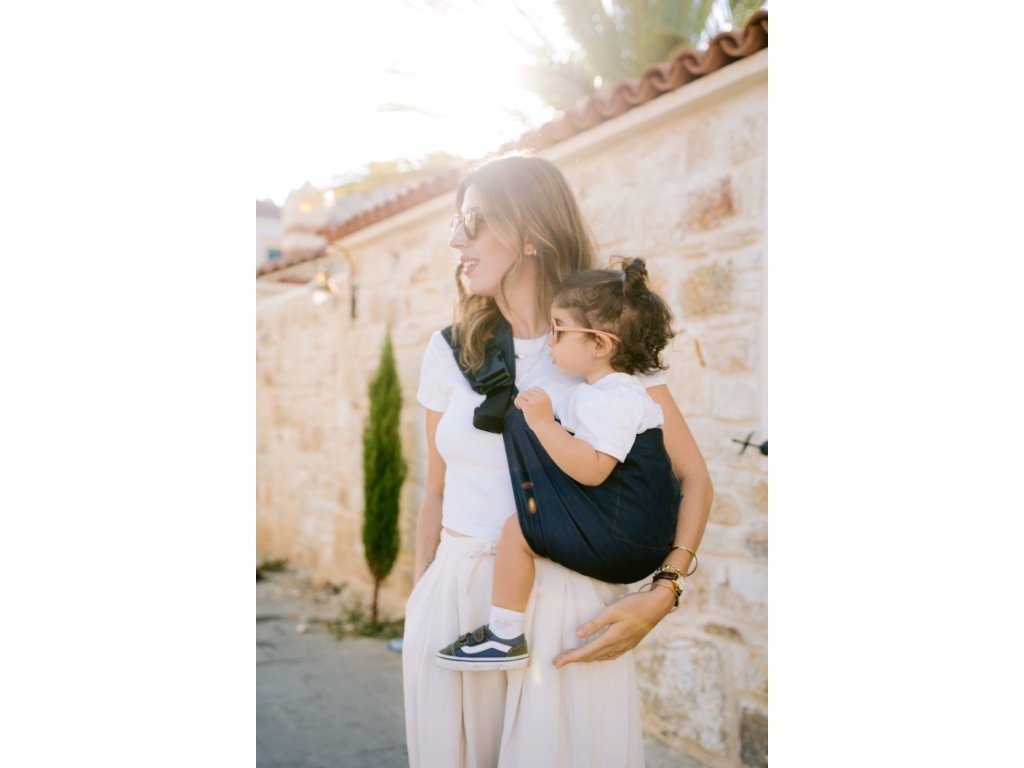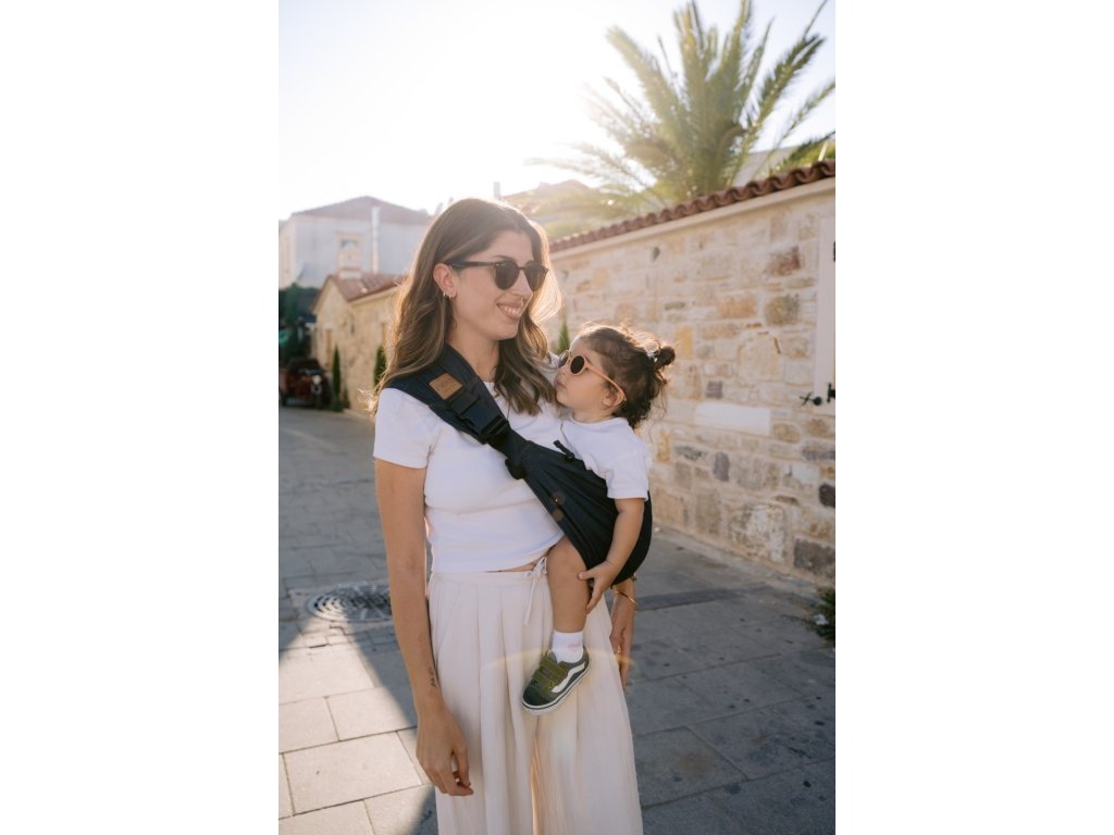 Nosítko je ušité z jemné organické biobavlny s certifikací GOTS – takže je šetrné k citlivé pokožce a krásně prodyšné. Nasazení? Jednoduchost sama. Žádné složité skládání nebo vázání – prostě nacvaknout přezky a můžete vyrazit.