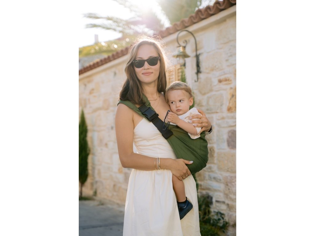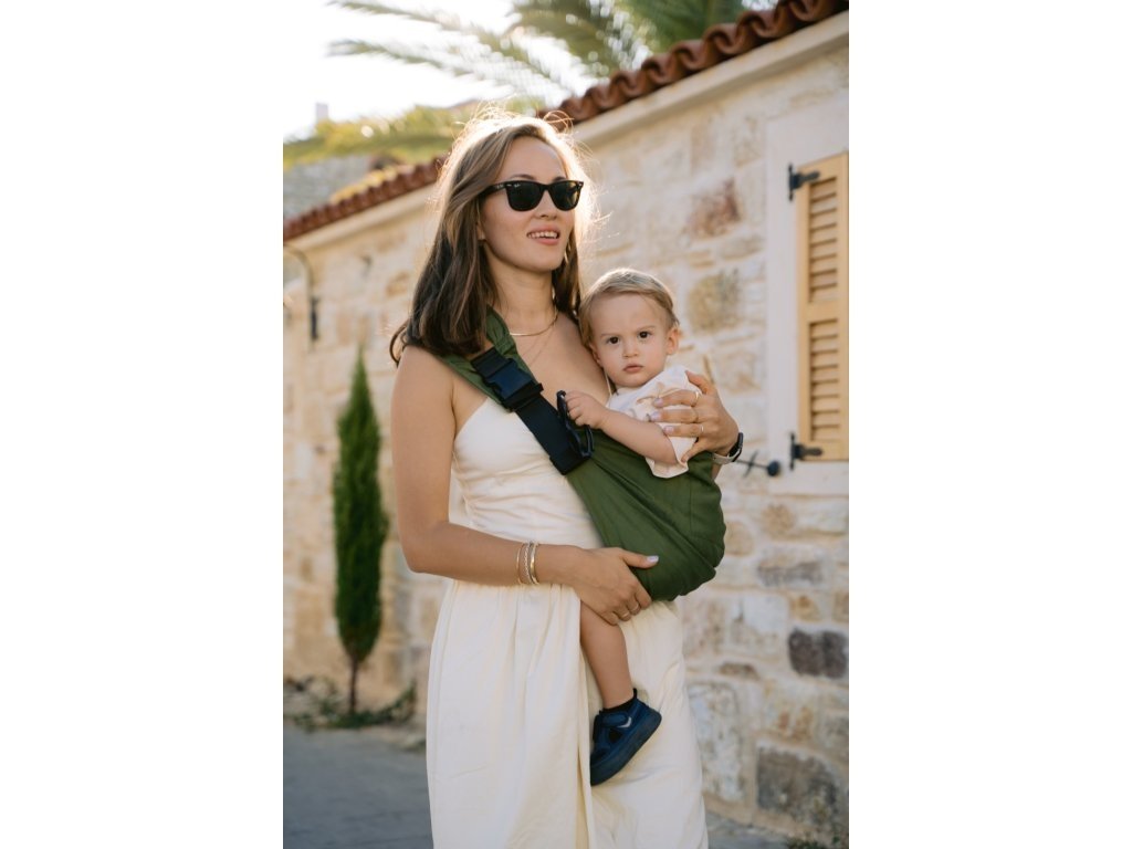 Nosítko je ušité z jemné organické biobavlny s certifikací GOTS – takže je šetrné k citlivé pokožce a krásně prodyšné. Nasazení? Jednoduchost sama. Žádné složité skládání nebo vázání – prostě nacvaknout přezky a můžete vyrazit.