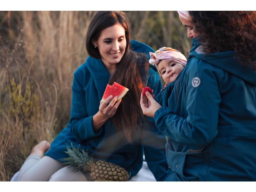 Ideální pro těhotenství a nošení miminka. Přidáním či ubráním vrstev oblečení můžeme regulovat teplotu, díky čemuž je softshellová bunda celoroční. Po odepnutí všech vsadek můžete bundu používat i jako běžné svrchní oblečení.