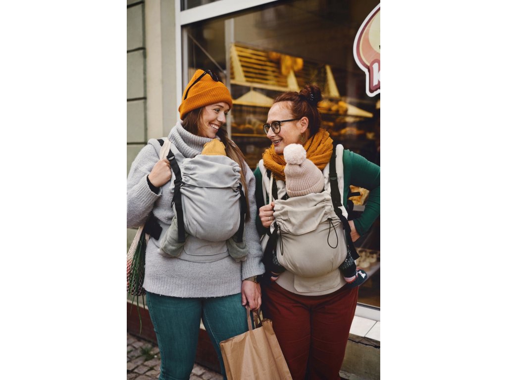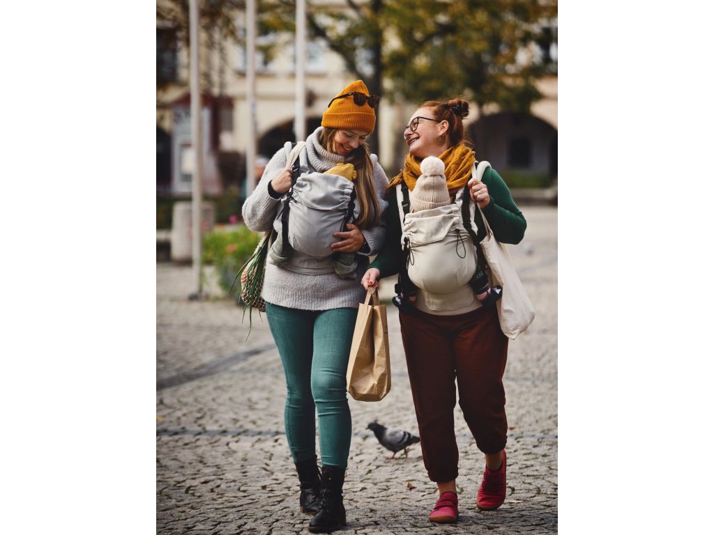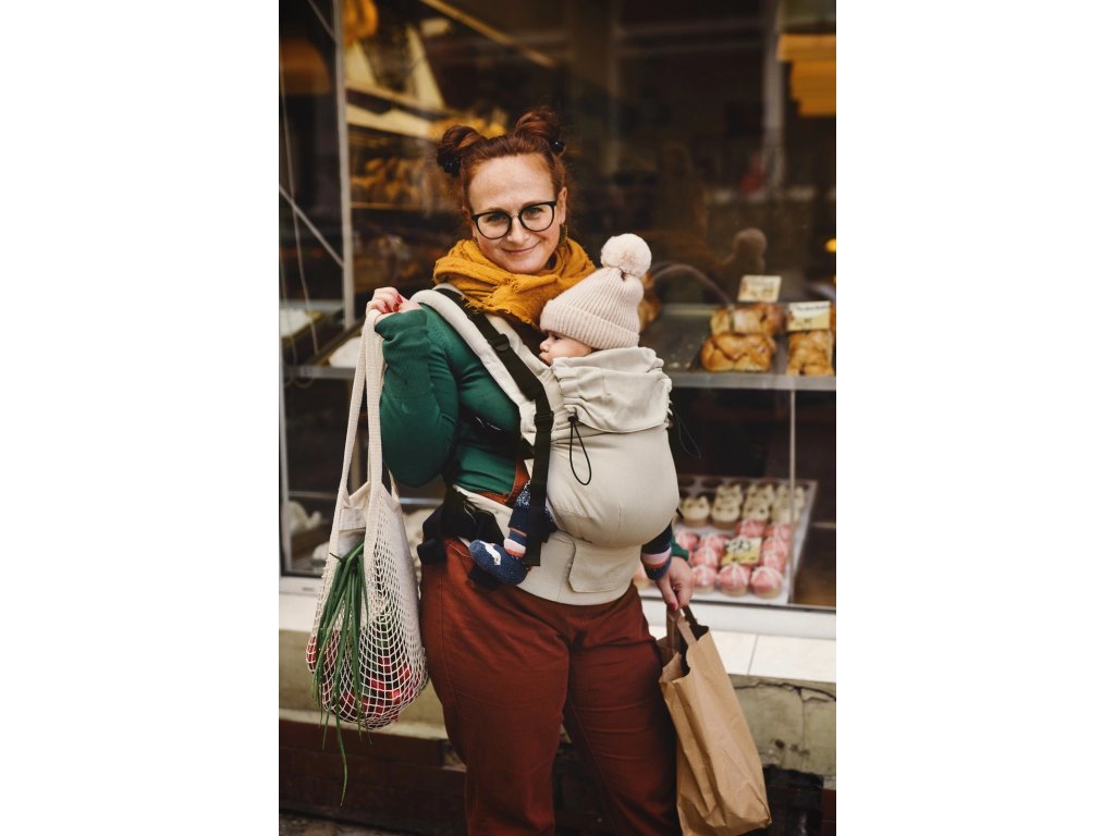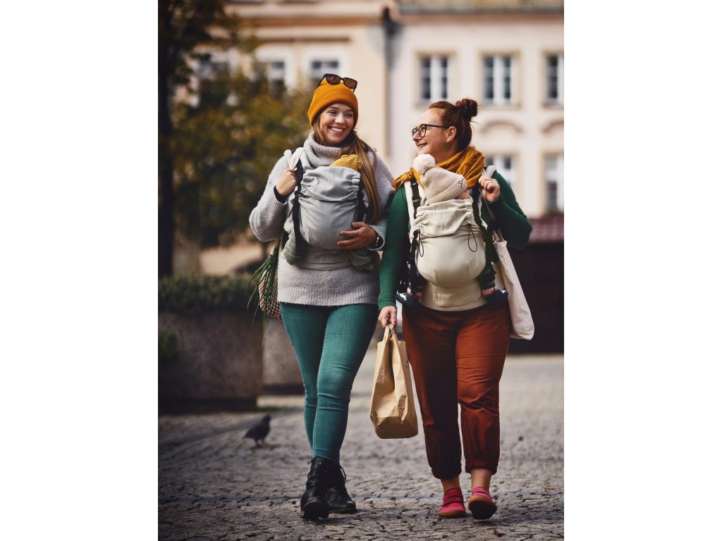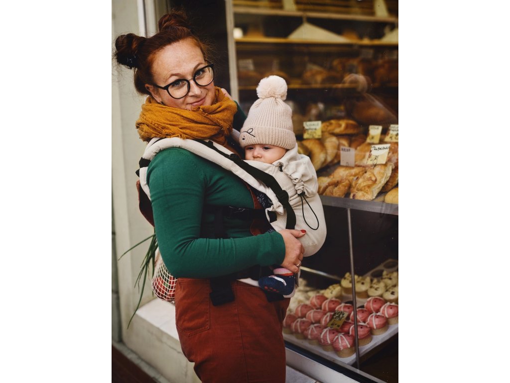 Vše, co musíte udělat, je zapnout bederní pás, položit malého, nasunout panel, nasadit popruhy, vše utáhnout a... hotovo! Vaše ruce jsou volné a vaše dítě se k vám bezpečně přitulí.
