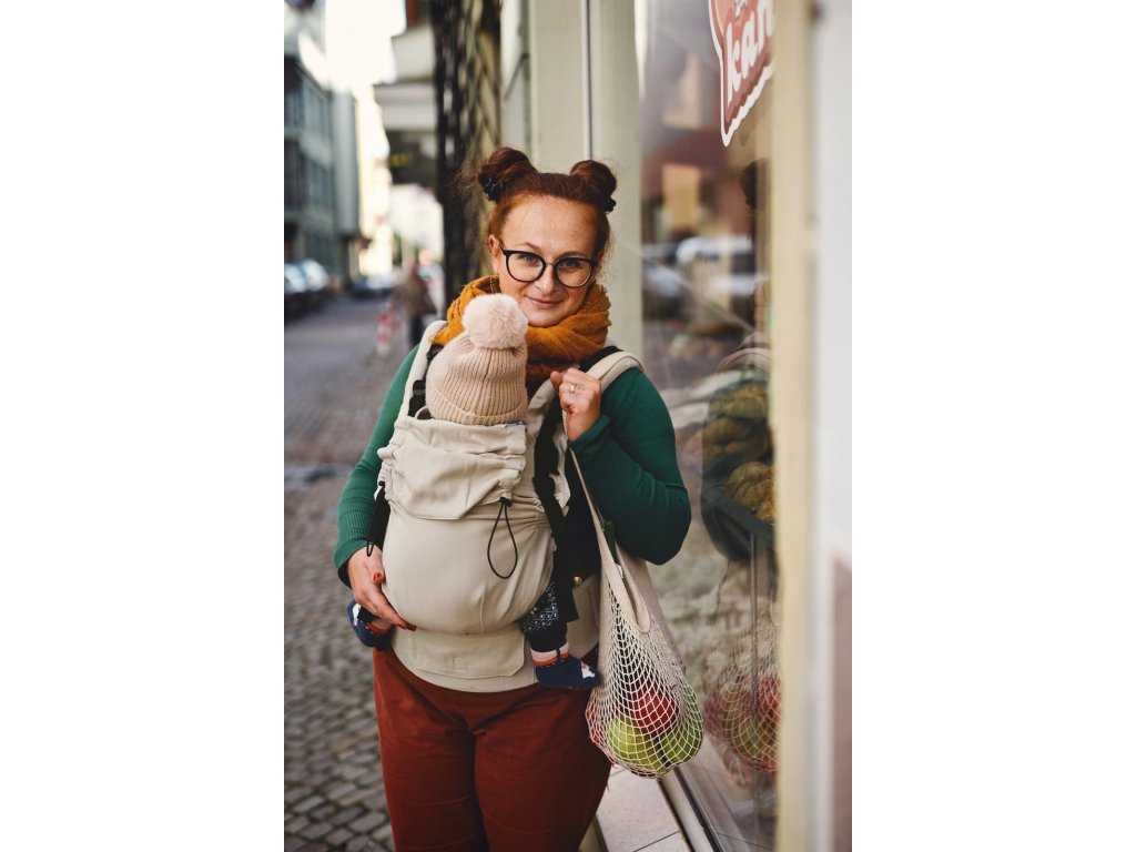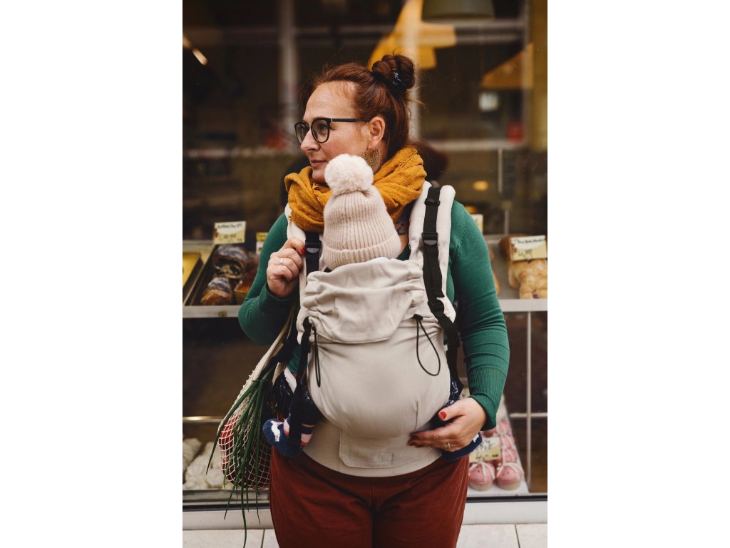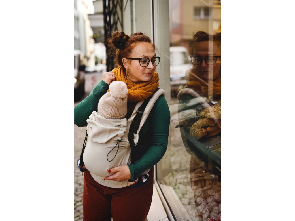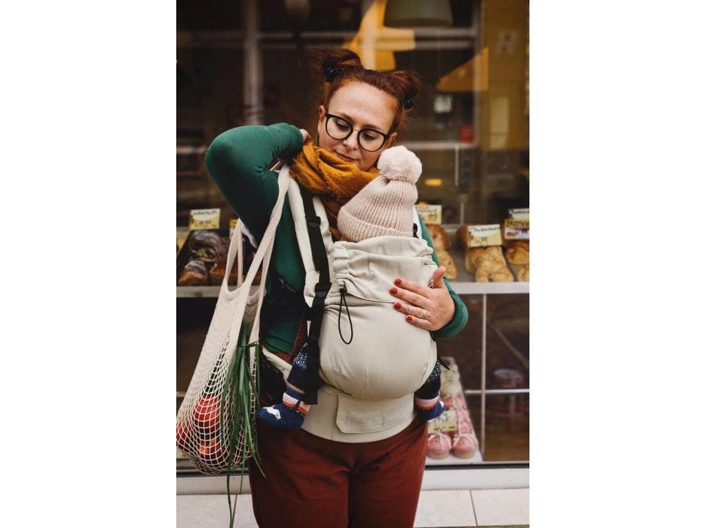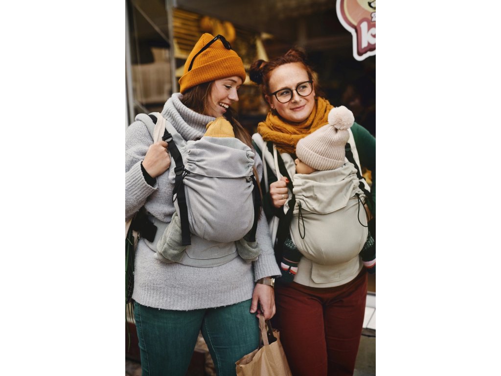 Vše, co musíte udělat, je zapnout bederní pás, položit malého, nasunout panel, nasadit popruhy, vše utáhnout a... hotovo! Vaše ruce jsou volné a vaše dítě se k vám bezpečně přitulí.