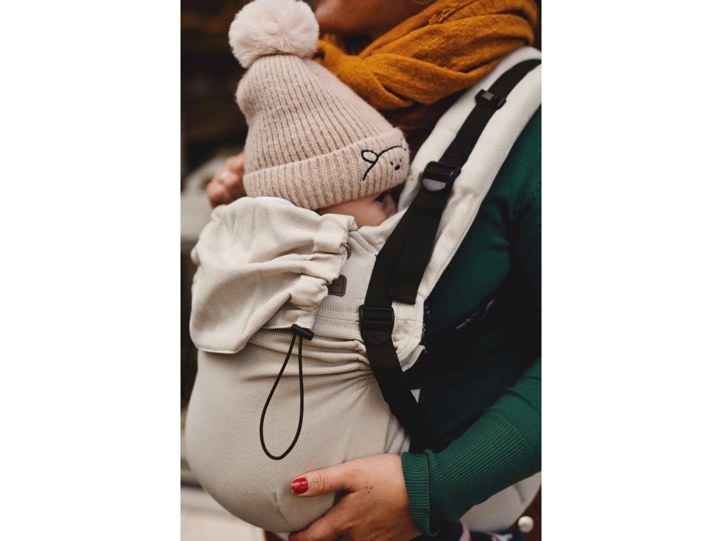 - Nosítko pro novorozence má odepínací kapuci, která je skvělá pro podepření hlavičky miminka při spánku. Připevňuje se na patentku, takže jej rychle zapnete / odepnete.