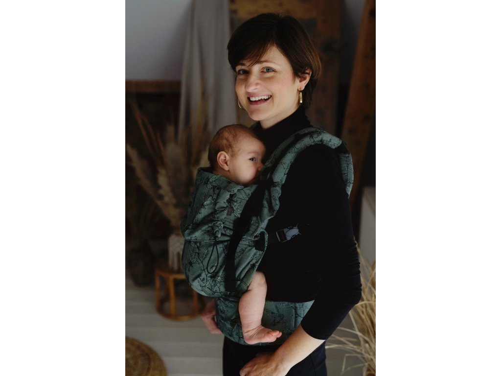 Vše, co musíte udělat, je zapnout bederní pás, položit malého, nasunout panel, nasadit popruhy, vše utáhnout a... hotovo! Vaše ruce jsou volné a vaše dítě se k vám bezpečně přitulí.