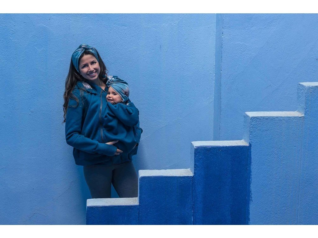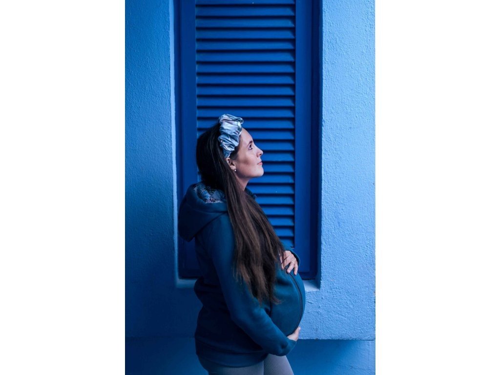 - Pokud se na to cítíte, mikina umožňuje nošení miminka na zádech i v těhotenství. Obě vsadky by měly být připnuty do mikiny