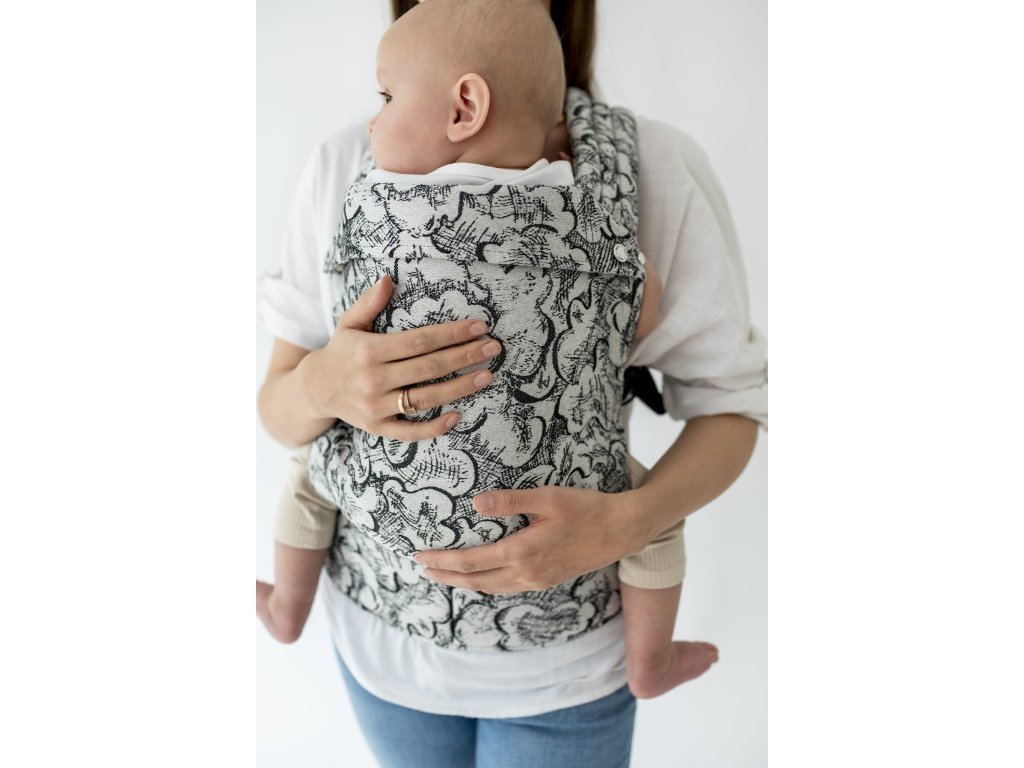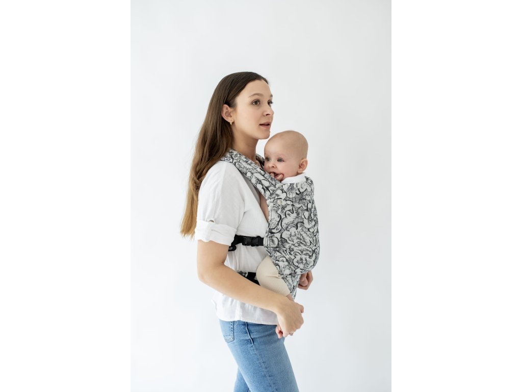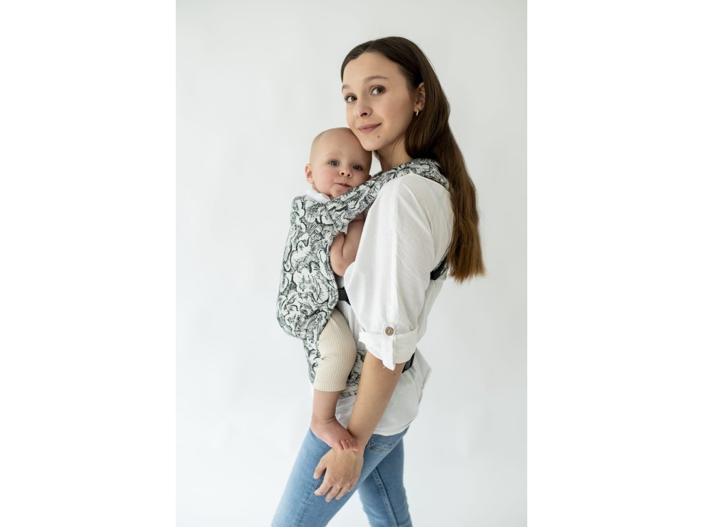 Qusy je NOVINKA mezi ergonomickými nosítky, sedí miminkům zhruba od velikosti 62 do 92/98 (2m-2-2,5let). V tomto nosítku můžete nosit klasicky, na zádech a to i v kombinaci s možností křížení popruhů.