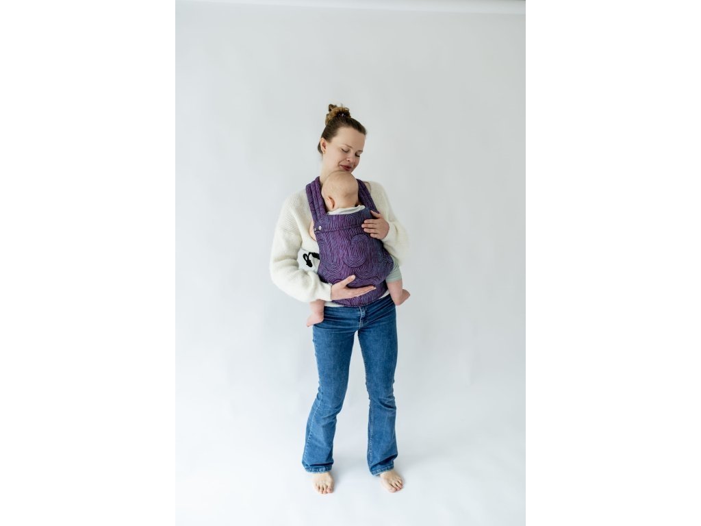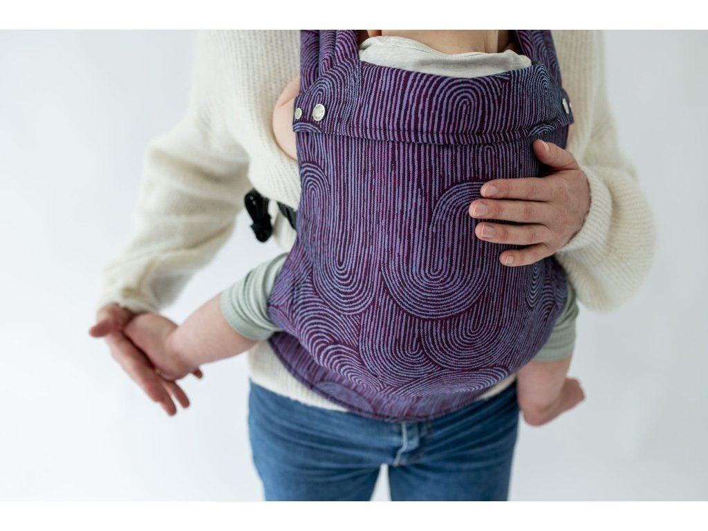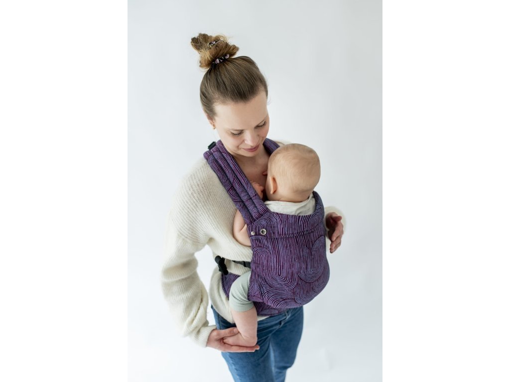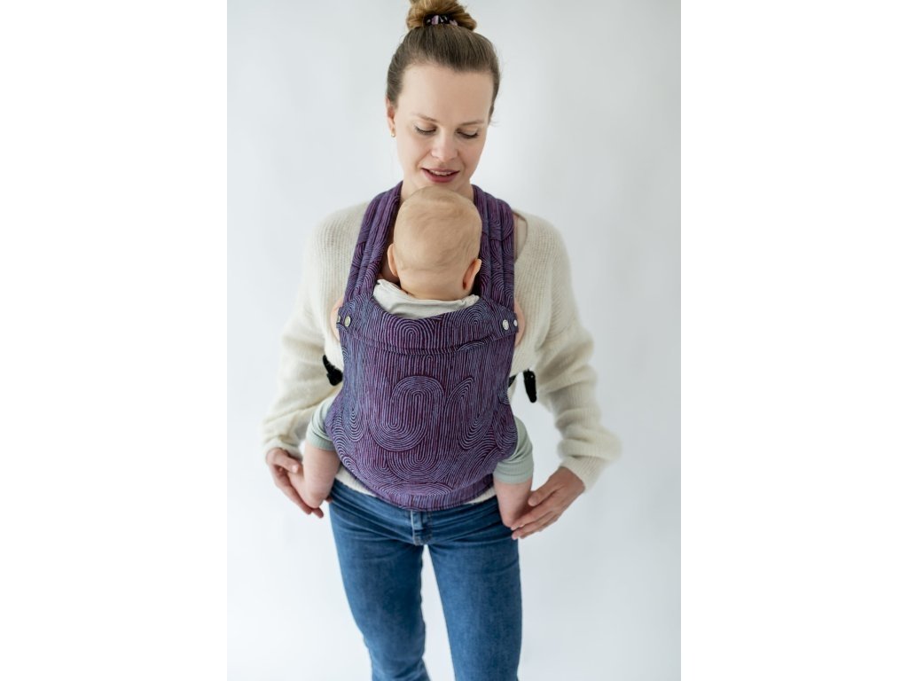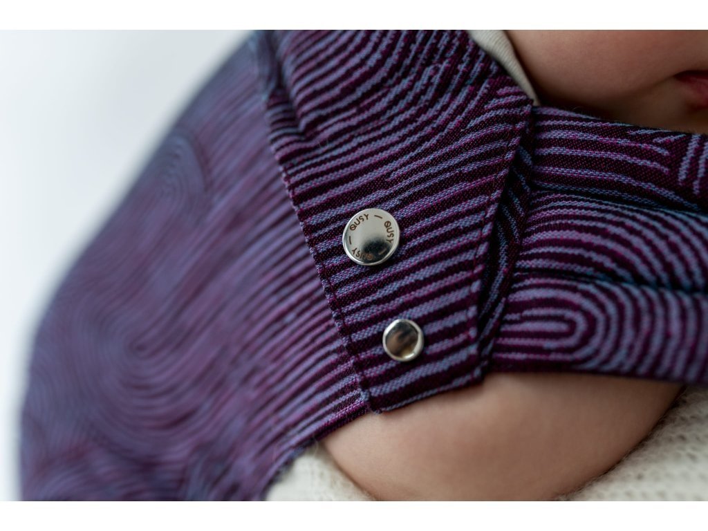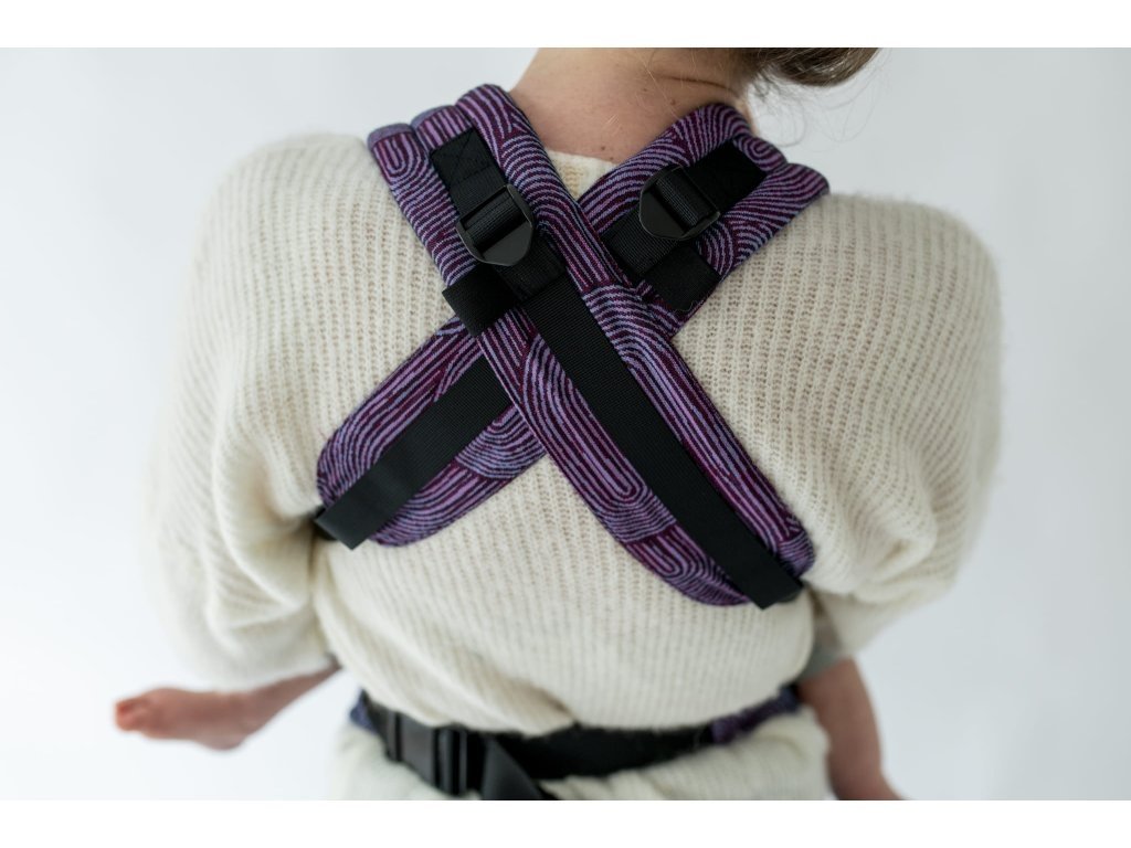 Ramenní popruhy jsou příjemně polstrované, určené ke křížení, ale je možné nosit je i klasicky K nastavení jsou zde umístěny nastavovací popruhy a jemné magnety, aby látka držela na správném místě, když dítě nosíme na zádech.