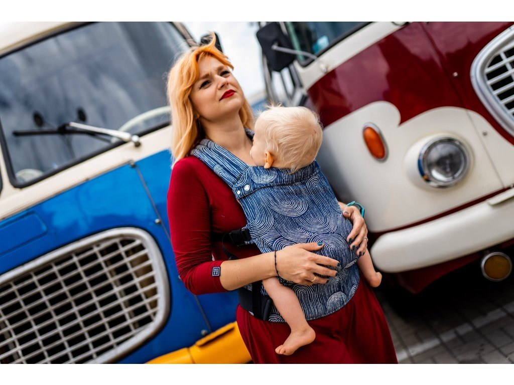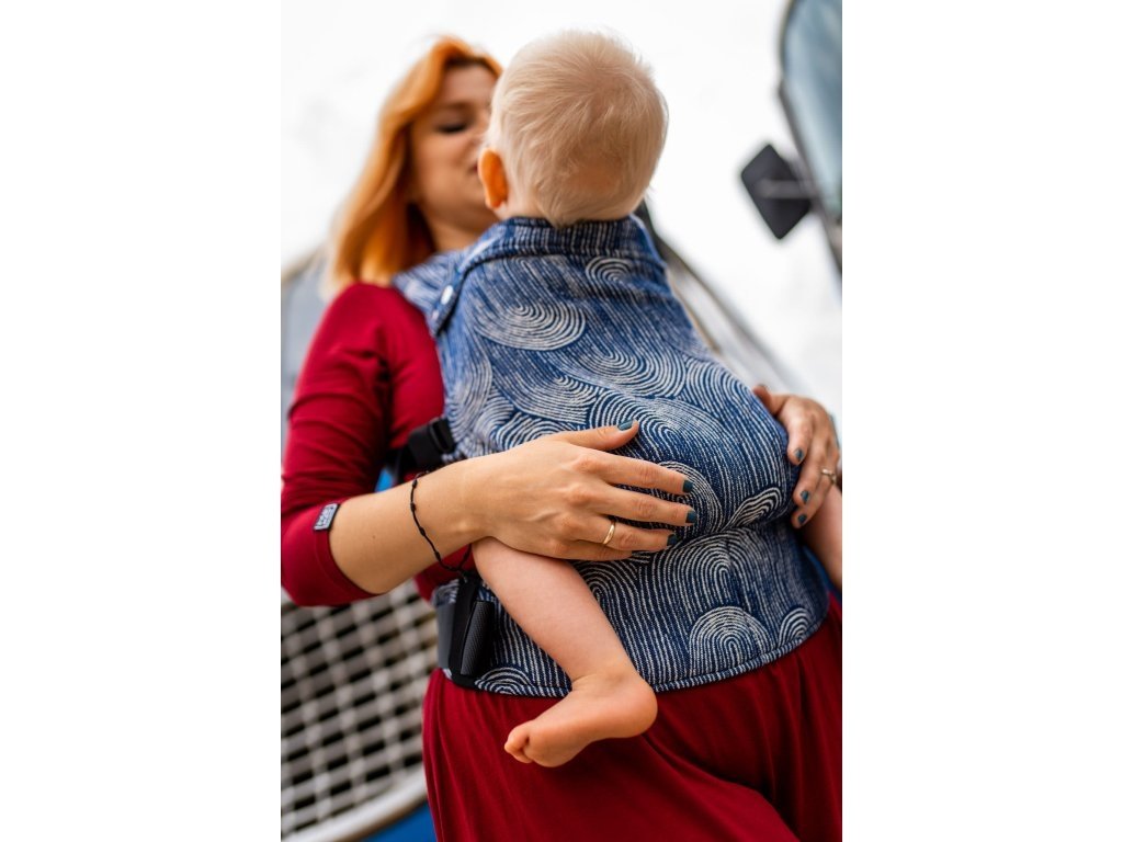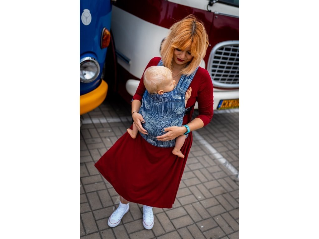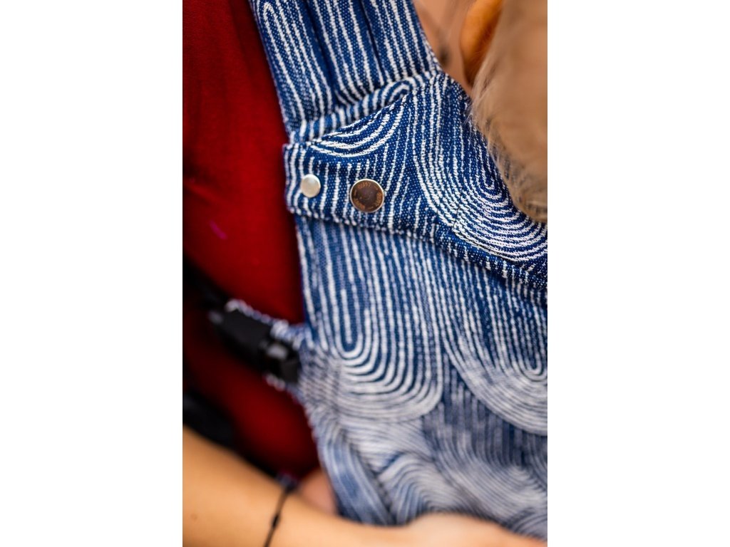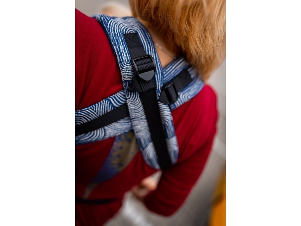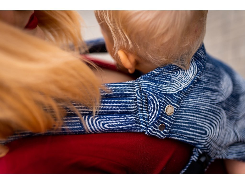 Ramenní popruhy jsou příjemně polstrované, určené ke křížení, ale je možné nosit je i klasicky K nastavení jsou zde umístěny nastavovací popruhy a jemné magnety, aby látka držela na správném místě, když dítě nosíme na zádech.