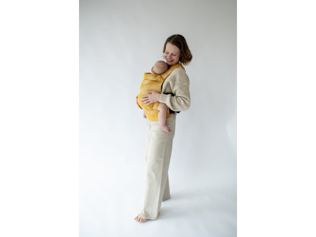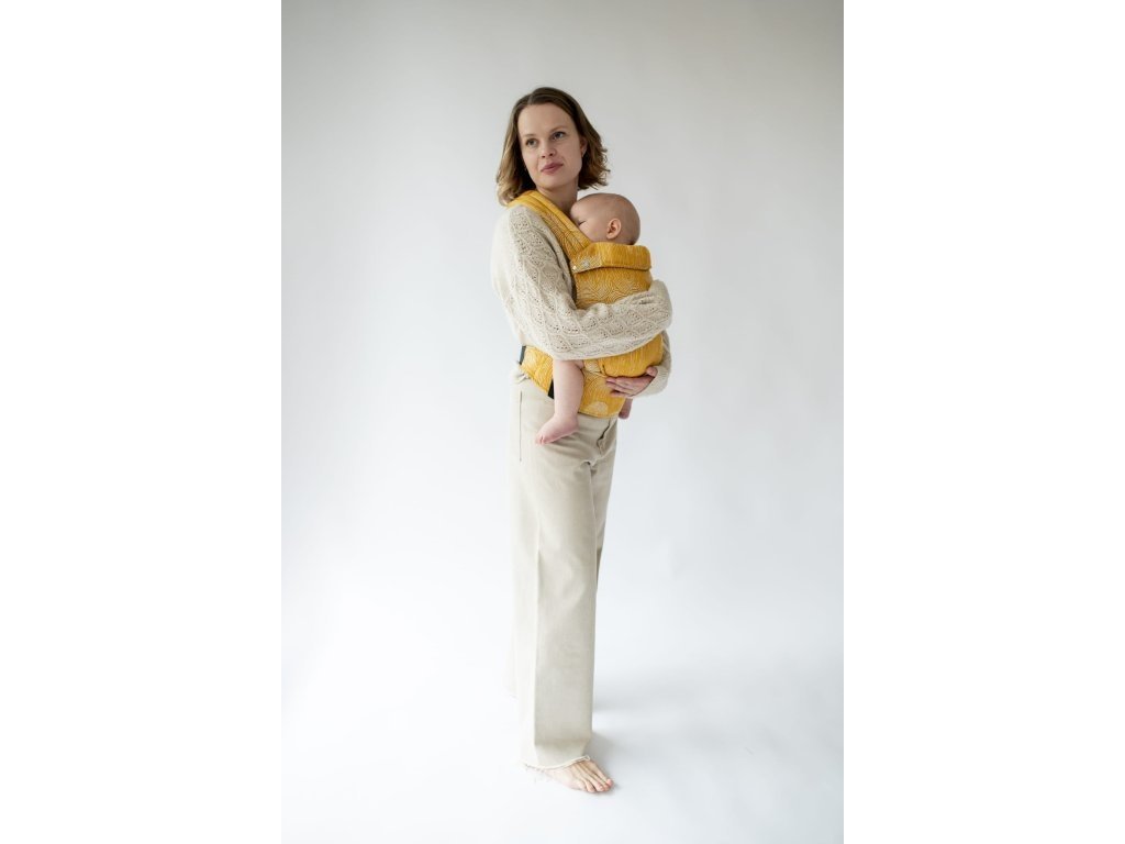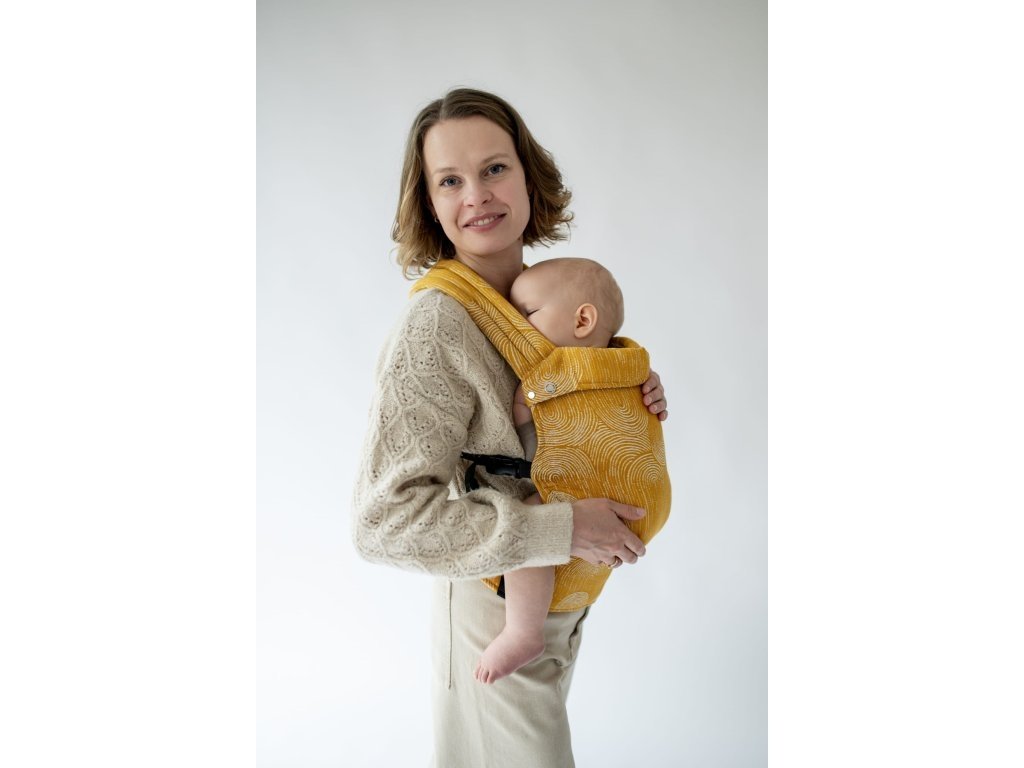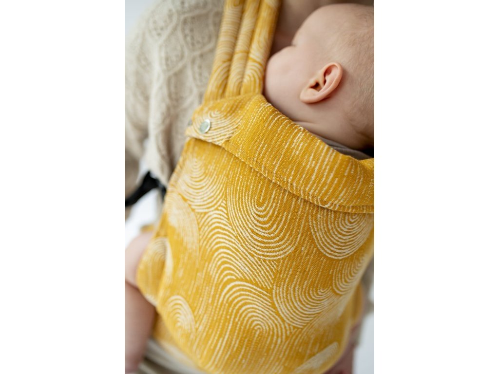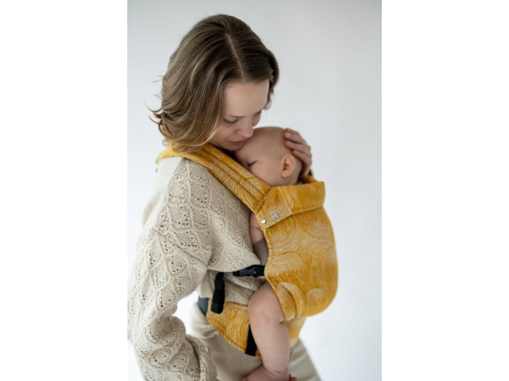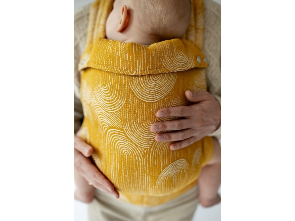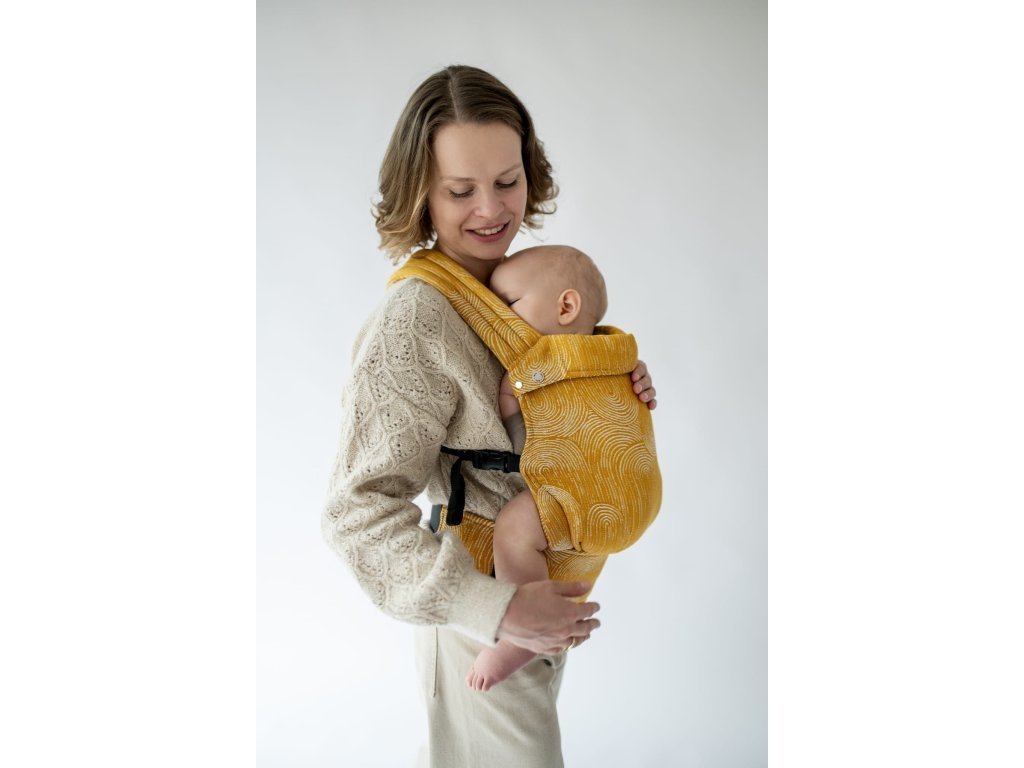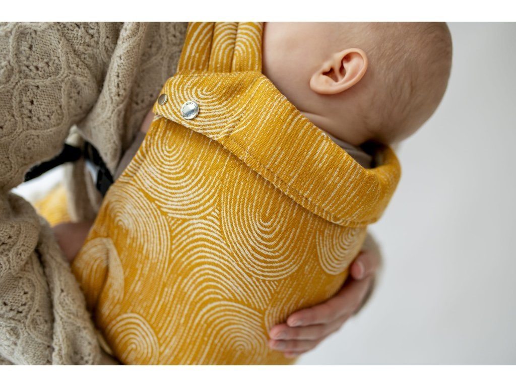 Ramenní popruhy jsou příjemně polstrované, určené ke křížení, ale je možné nosit je i klasicky K nastavení jsou zde umístěny nastavovací popruhy a jemné magnety, aby látka držela na správném místě, když dítě nosíme na zádech.