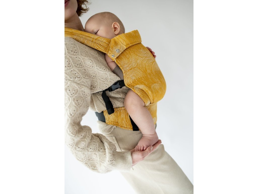 Co oceníte je intuitivní nastaven šířky i výšky zádové opěrky, díky kterému jej snadno a rychle přizpůsobíte dítěti. Nosítko má široký a pohodlný bederní pás jehož spona je zajištěna jistící gumičkou, který spolu s dobře polstrovanými ramenními popruhy uleví vaší páteři a ramenům.