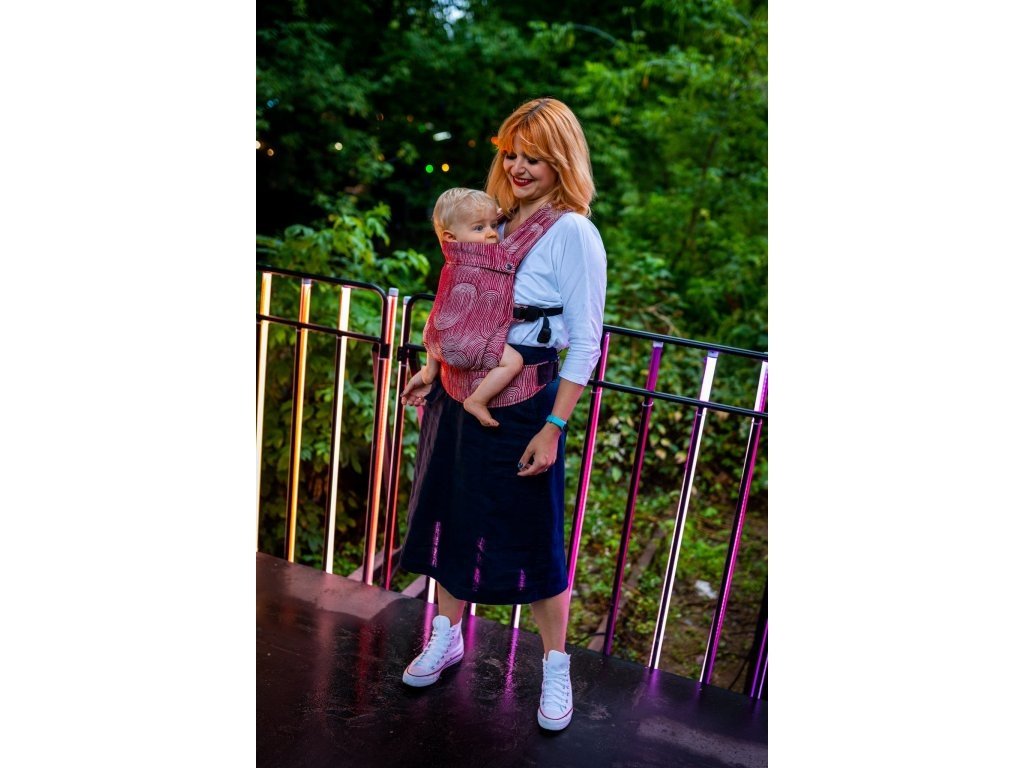 Co oceníte je intuitivní nastaven šířky i výšky zádové opěrky, díky kterému jej snadno a rychle přizpůsobíte dítěti. Nosítko má široký a pohodlný bederní pás jehož spona je zajištěna jistící gumičkou, který spolu s dobře polstrovanými ramenními popruhy uleví vaší páteři a ramenům.