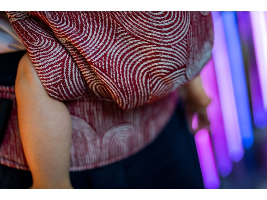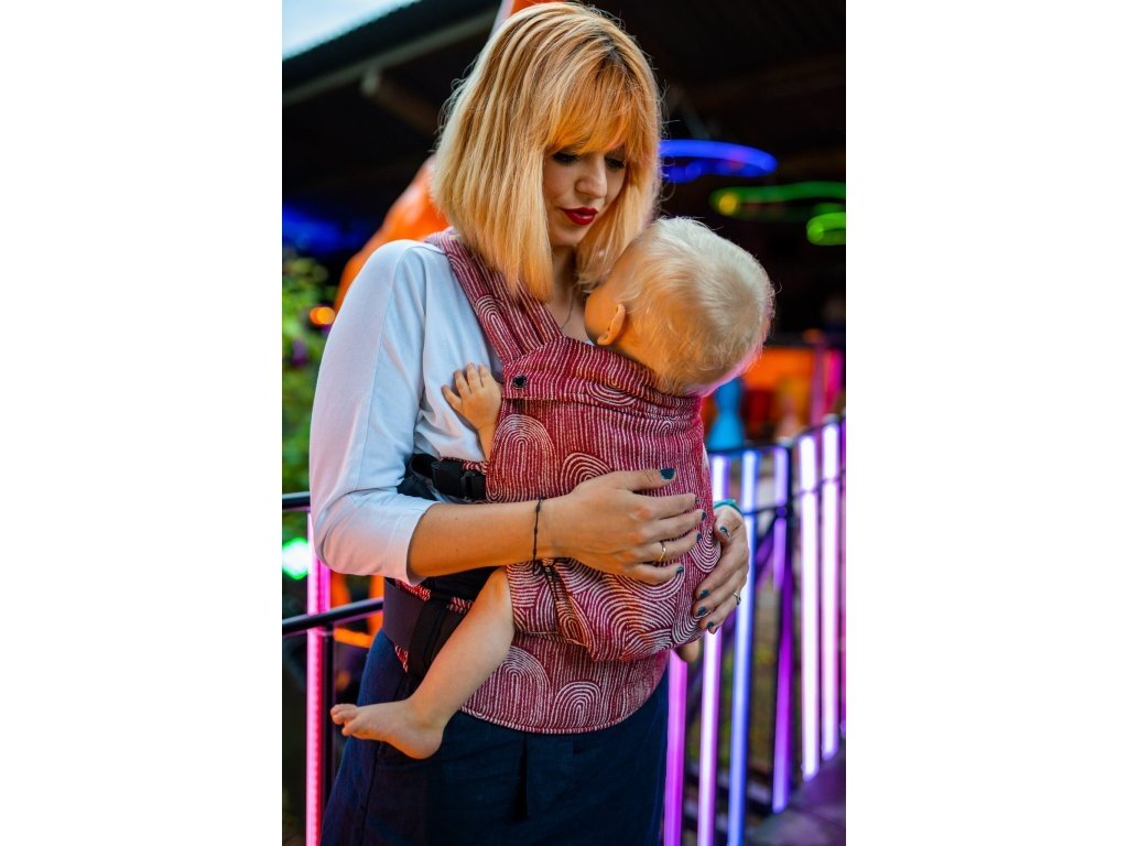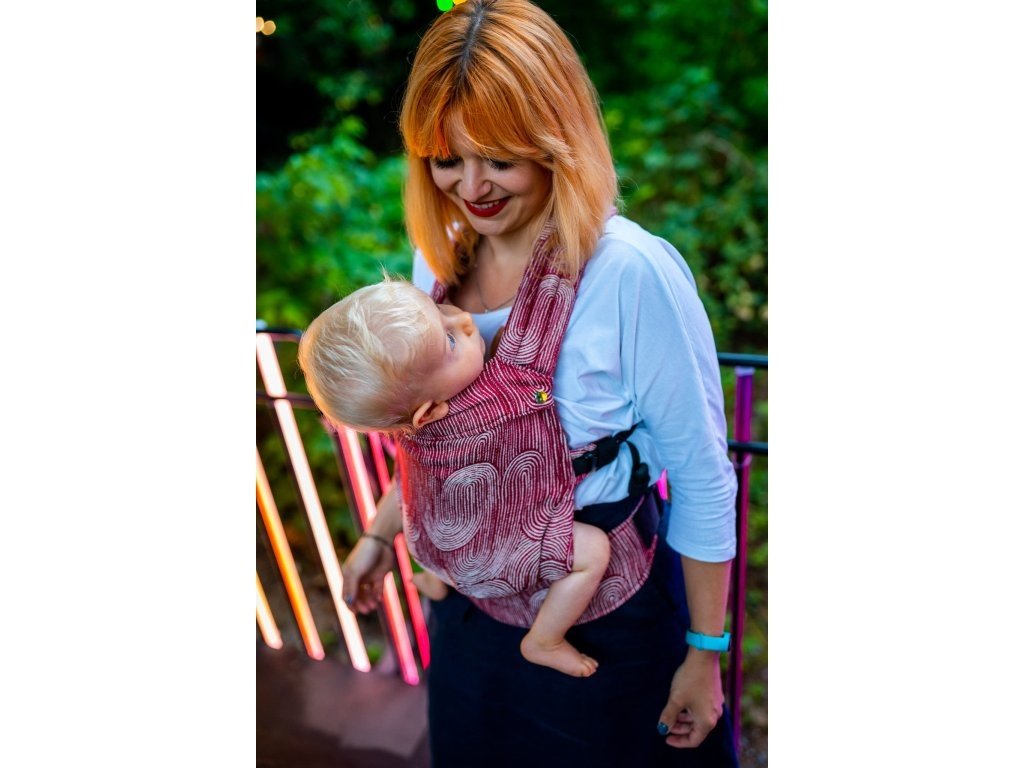 Ramenní popruhy jsou příjemně polstrované, určené ke křížení, ale je možné nosit je i klasicky K nastavení jsou zde umístěny nastavovací popruhy a jemné magnety, aby látka držela na správném místě, když dítě nosíme na zádech.