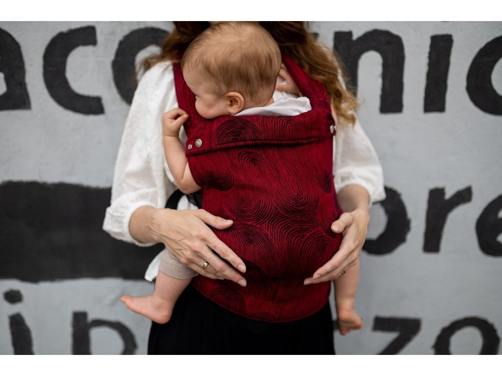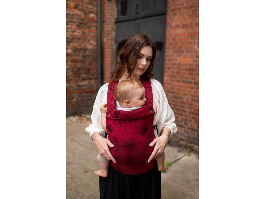 Ramenní popruhy jsou příjemně polstrované, určené ke křížení, ale je možné nosit je i klasicky K nastavení jsou zde umístěny nastavovací popruhy a jemné magnety, aby látka držela na správném místě, když dítě nosíme na zádech.