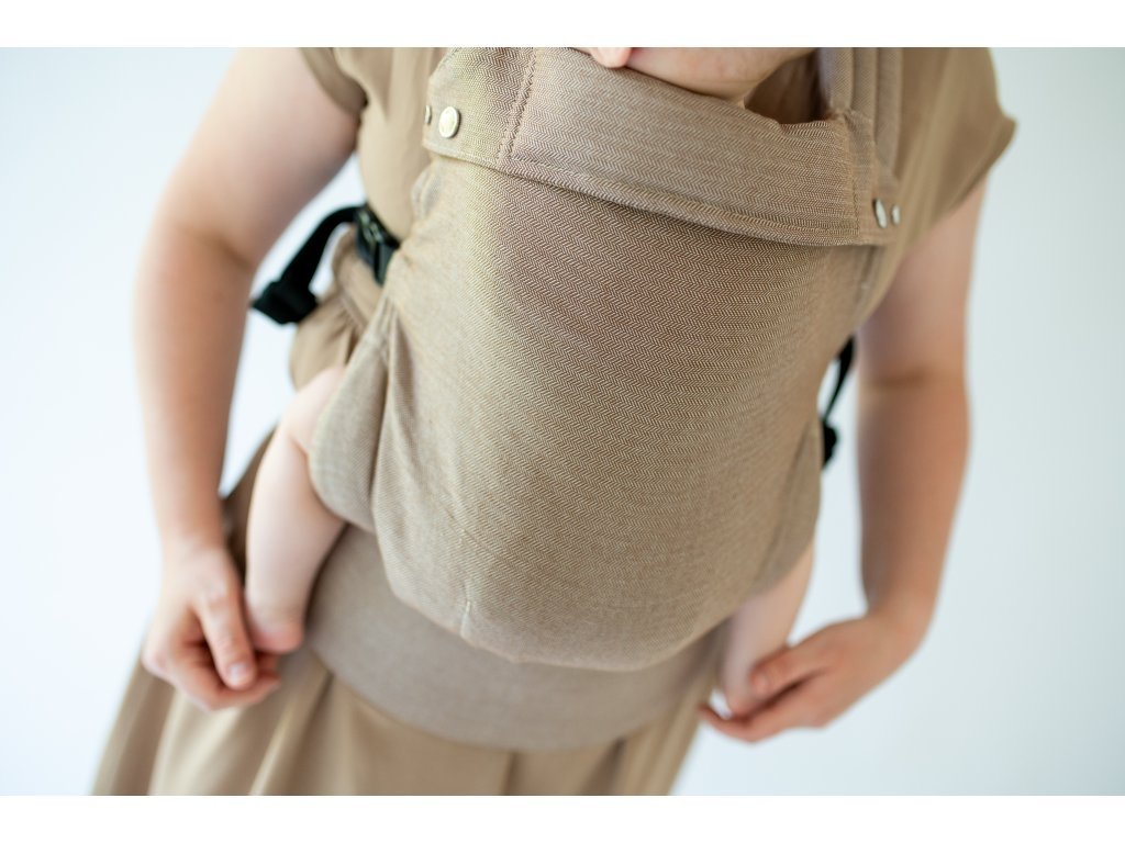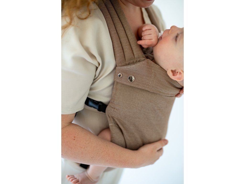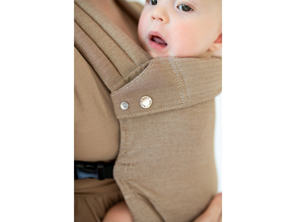 Ramenní popruhy jsou příjemně polstrované, určené ke křížení, ale je možné nosit je i klasicky K nastavení jsou zde umístěny nastavovací popruhy a jemné magnety, aby látka držela na správném místě, když dítě nosíme na zádech.
