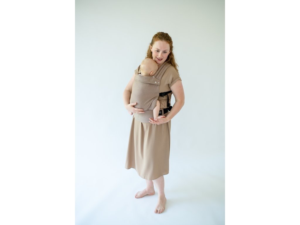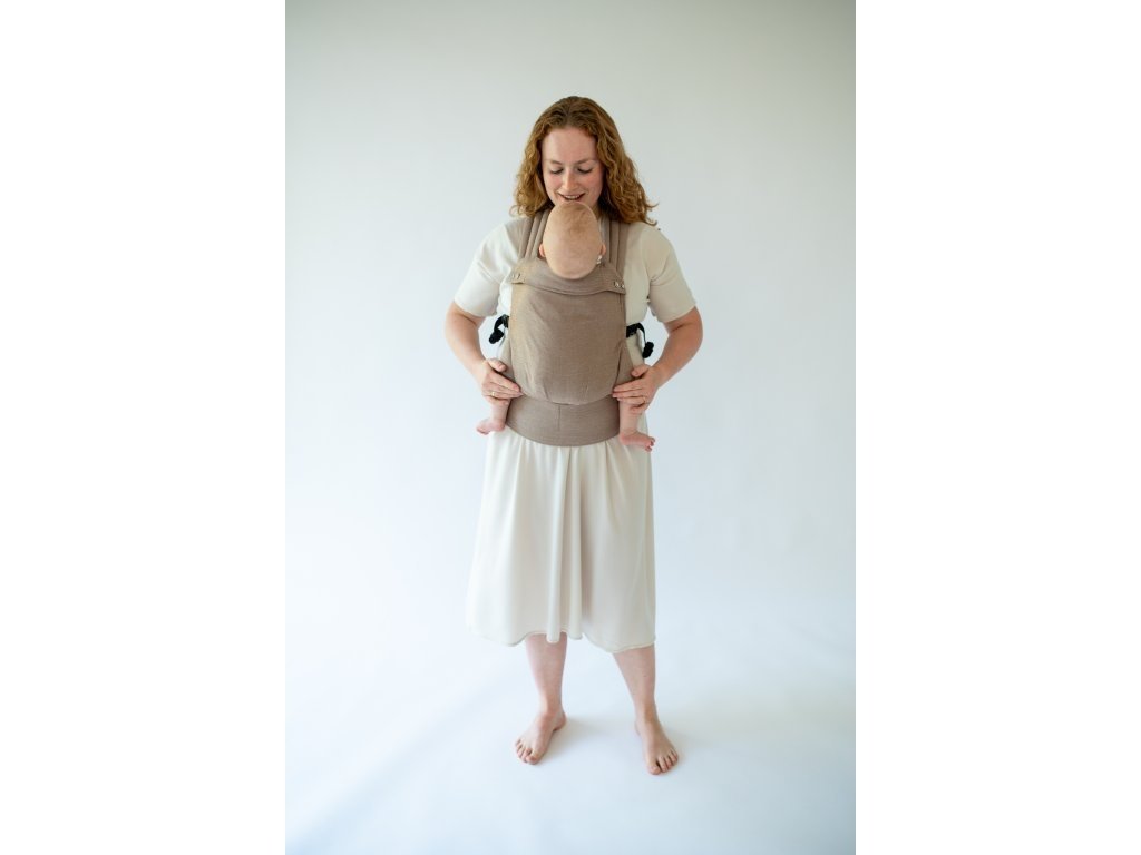 Bederní pás je široký, středně tvrdý, velmi tenký a ergonomicky tvarovaný. Díky použití popruhů na nastavovací pásce opatřené váhou (obrovské plus než udávání věku dítěte, koneckonců není roční miminko jako roční miminko) dítěte je možné nosítko velmi přesně nastavit, panel se nikde neshrnuje, ale velmi esteticky se skládá do záševků.