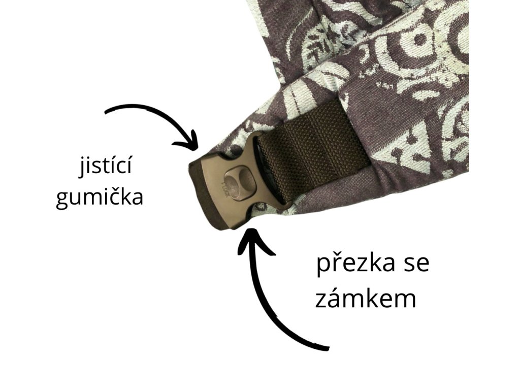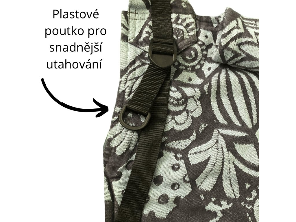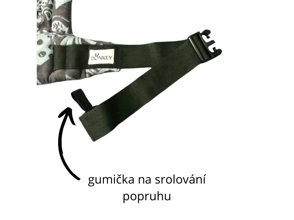 - Na ramenou jsou oboustranné spony - je tedy možné ramena i křížit, ramenní popruhy pohodlně utáhnete s dítětem na břiše i na zádech