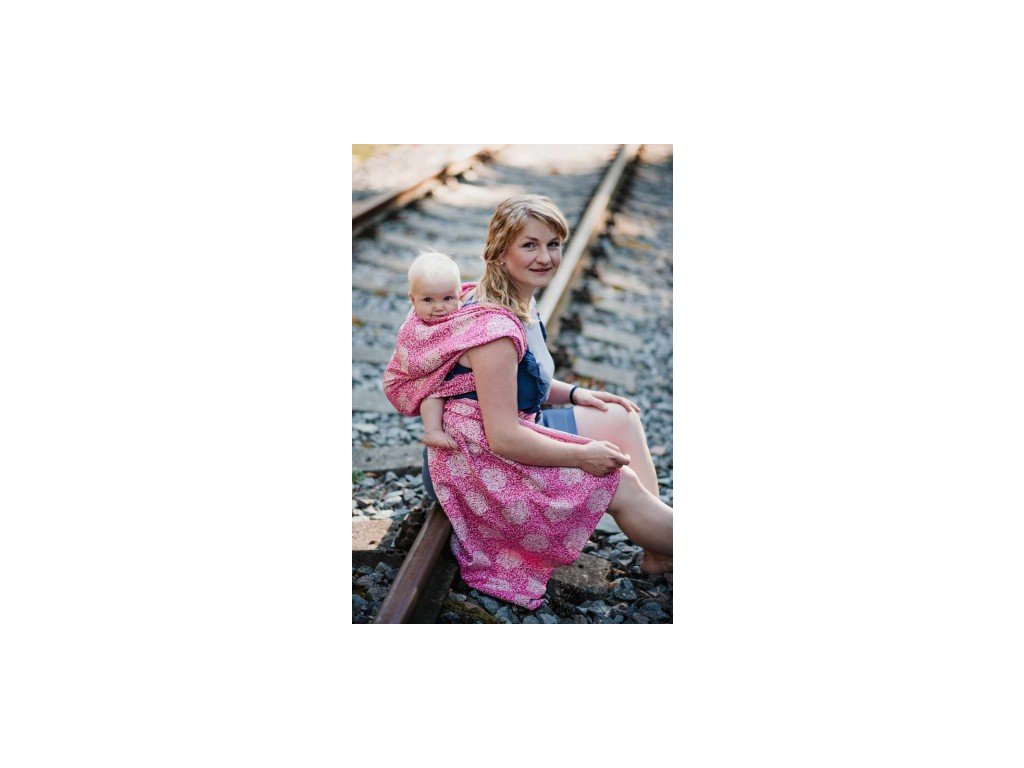 Šátek ŠaNaMi Kolekce 2017 Hvozdík růžový je středně tenký celobavlněný šátek, který je určen pro nošení dětí zhruba od 4 měsíců, snadno si poradí s dvouletým nošencem ve vícevrstveném úvazu, proto se dá šátek zařadit do kategorie na celé nosící období.