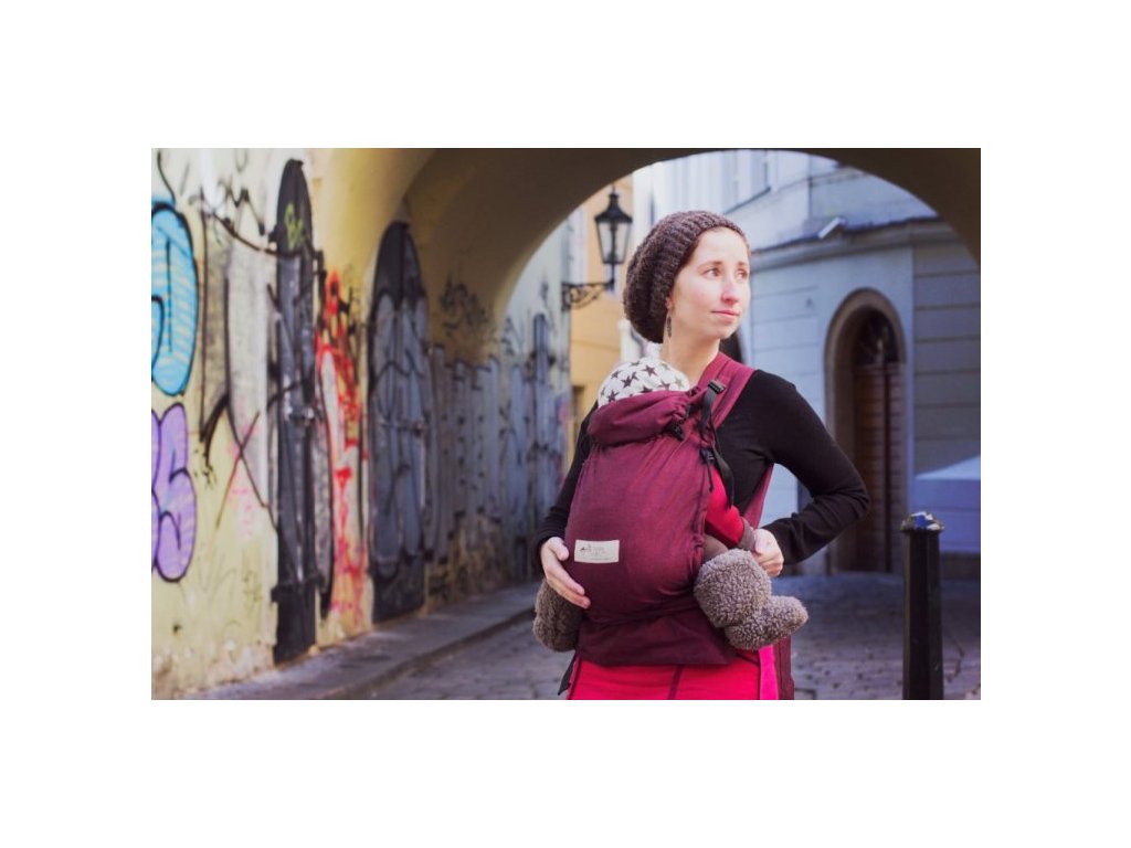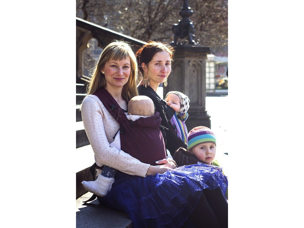 Je to opravdu jednoduché, zejména u větších dětí, kde odpadá měření nožiček, zatahování boků a jištění hlavičky. Větším dětem lze také při nošení vepředu i na zádech zajistit při spaní hlavičku pomocí kapucky k tomu určené.