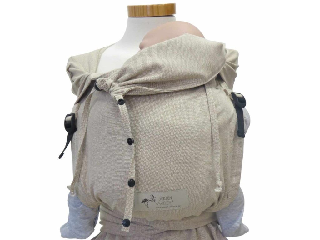 Nosítko Storchenwiege nemá klasické ramenní popruhy ale lehce polstrované pásy, které se zavazují jako u tradičních nosítek Mei Tai. To je výhodné zejména pokud chtějí nosit partneři různých tělesných konstitucí. Nemusíte složitě nastavovat přezky, prostě nosítko pouze jinak dotáhnete.