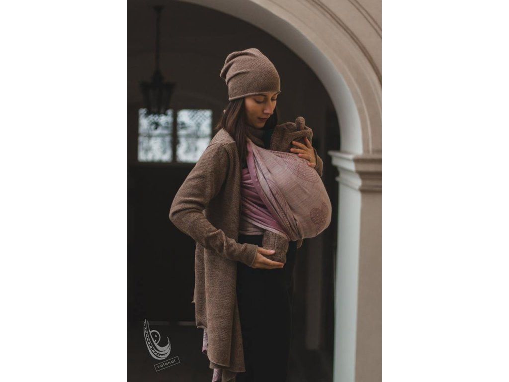 Jemný, lehký, vzdušný, nosný šátek v něžných pudrových barvách, který Vás zlehka ovine a zároveň díky Tussahu a lnu Vám poskytne neočekávanou nosnost a jistotu.