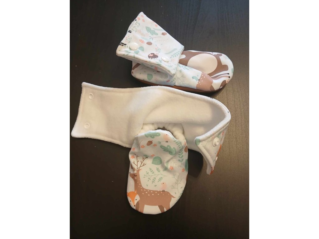 Vnější vrstva capáčků je softshel, vnitřní příjemný fleece, podrážka z hovězí kůže udrží nožičky vašeho miminka krásně v teple.