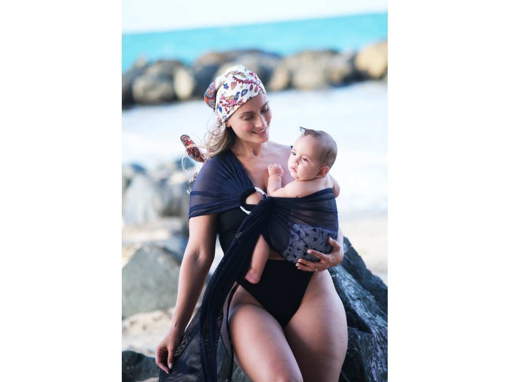 Water sling je jednoduchý šátek určený pro nošení dětí ve vlhkém prostředí. Materiál nesaje vodu a rychle schne. Water sling Vám umožní mít volné ruce, když se sprchujete, hrajete si u bazénu, nebo na pláži se staršími dětmi, nebo jen tancujete v letním dešti. Představte si, že nemusíte nosit těžkou autosedačku do sprchy bazénu, nebo pokládat dítě na špinavou podlahu, zatímco se sprchujete. S Water slingem je daleko jednodušší se osprchovat, nebo umýt vlasy, když pečujete o nejmenší. I velmi netrpělivé dítě se zklidní, bude-li mít možnost dát si společně s Vámi teplou sprchu. Kojení je taktéž pohodlné, stejně jako odpočinek u táty v houpacím křesle.