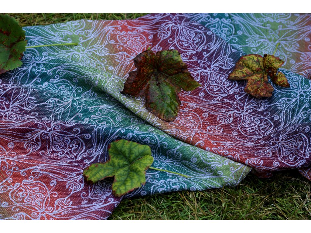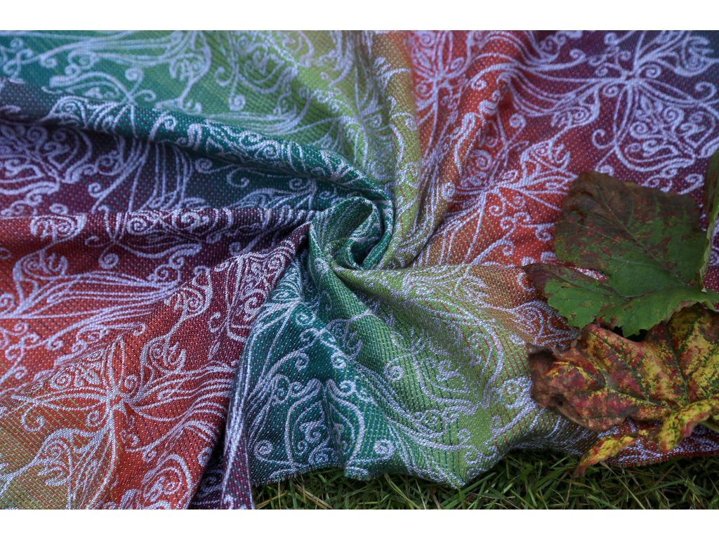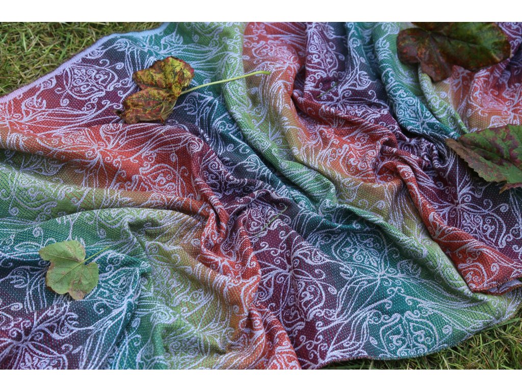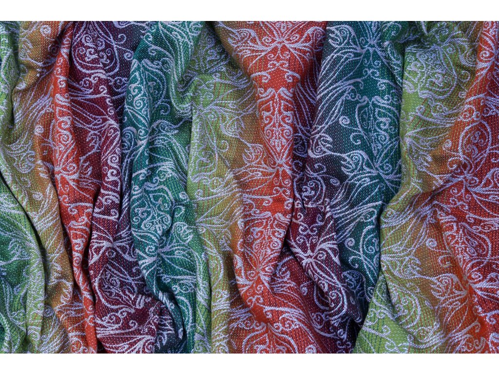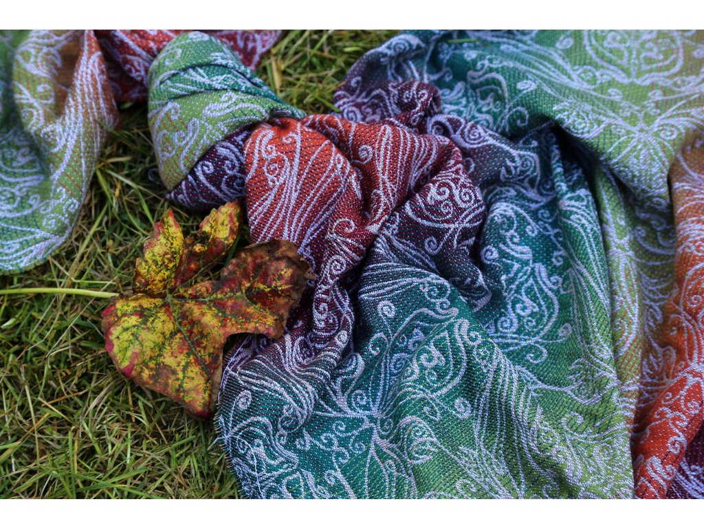 Dvojitě zaobroubené lemy, příjemně klouzavé při dotahování, v úvazu nepovolují a neprokluzují, šátek dělá velký úzel - doporučujeme úvaz zakončit uzlem pomocí Ring Sling kroužku.